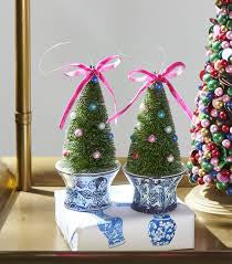 6” Bottle Brush Trees in Chinoiserie Pot Ornament by RAZ Imports