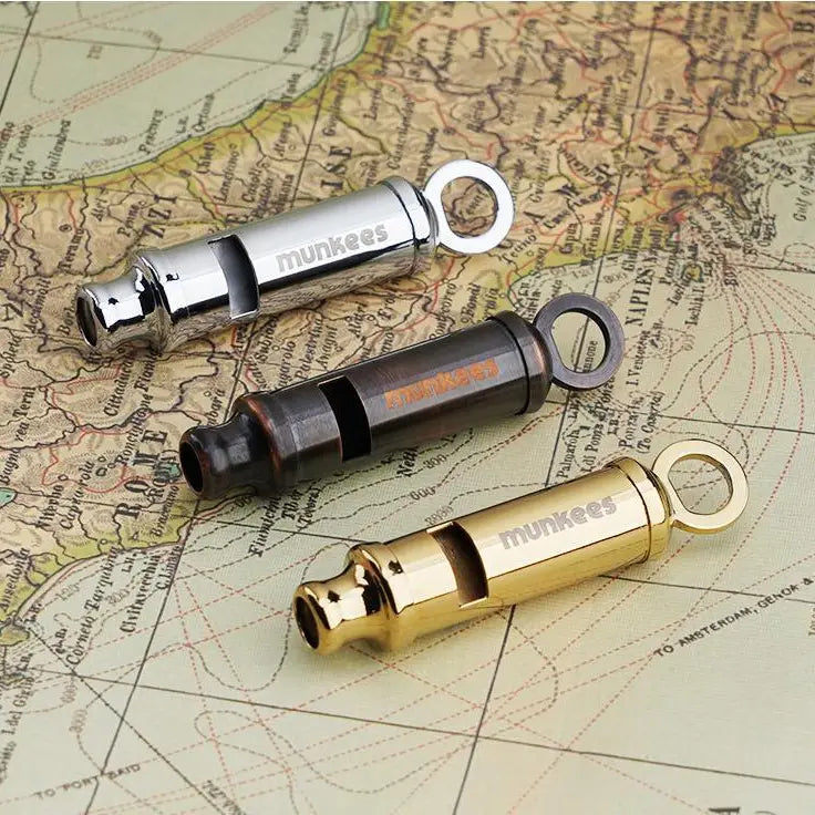 Brass Police Whistle comes in three colors: gold, copper, and silver. The ring on this whistle makes it easy to attach to a lanyard, backpack, purse, and more. It is useful for camping, hiking, backpacking, and emergency prep.