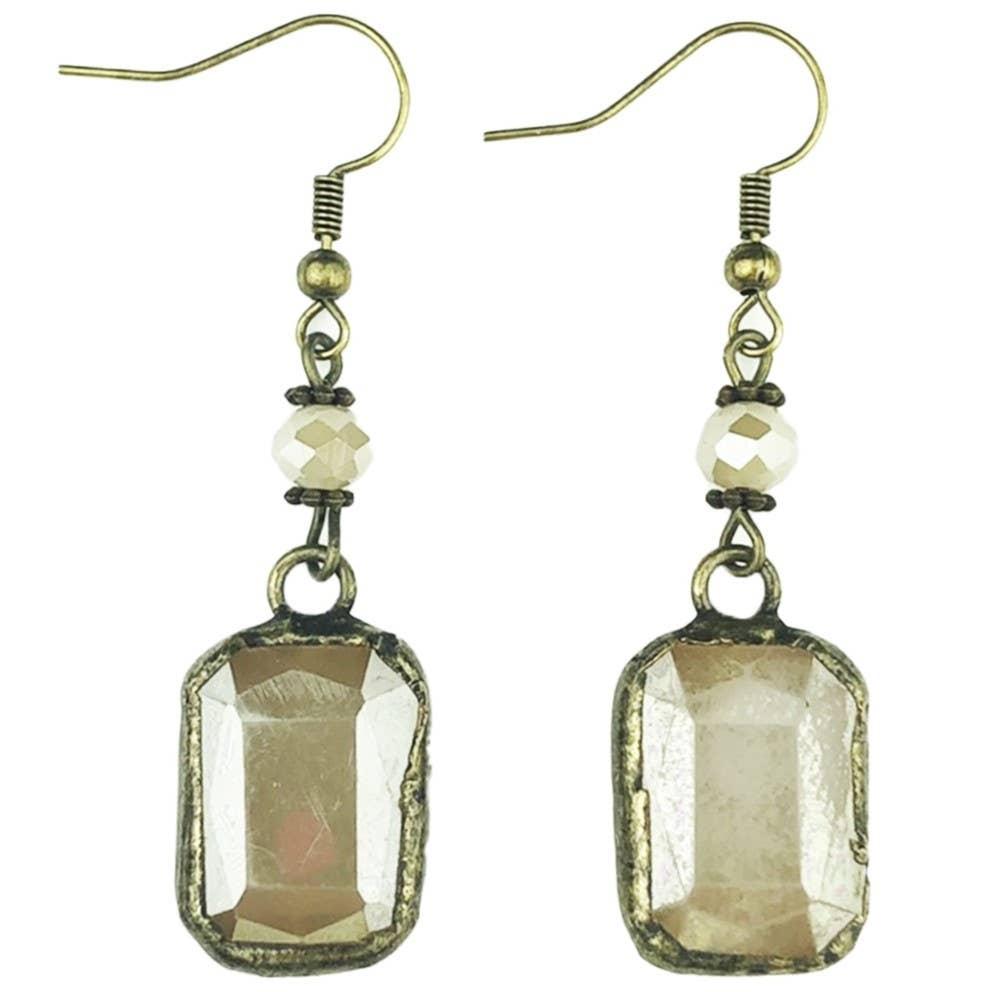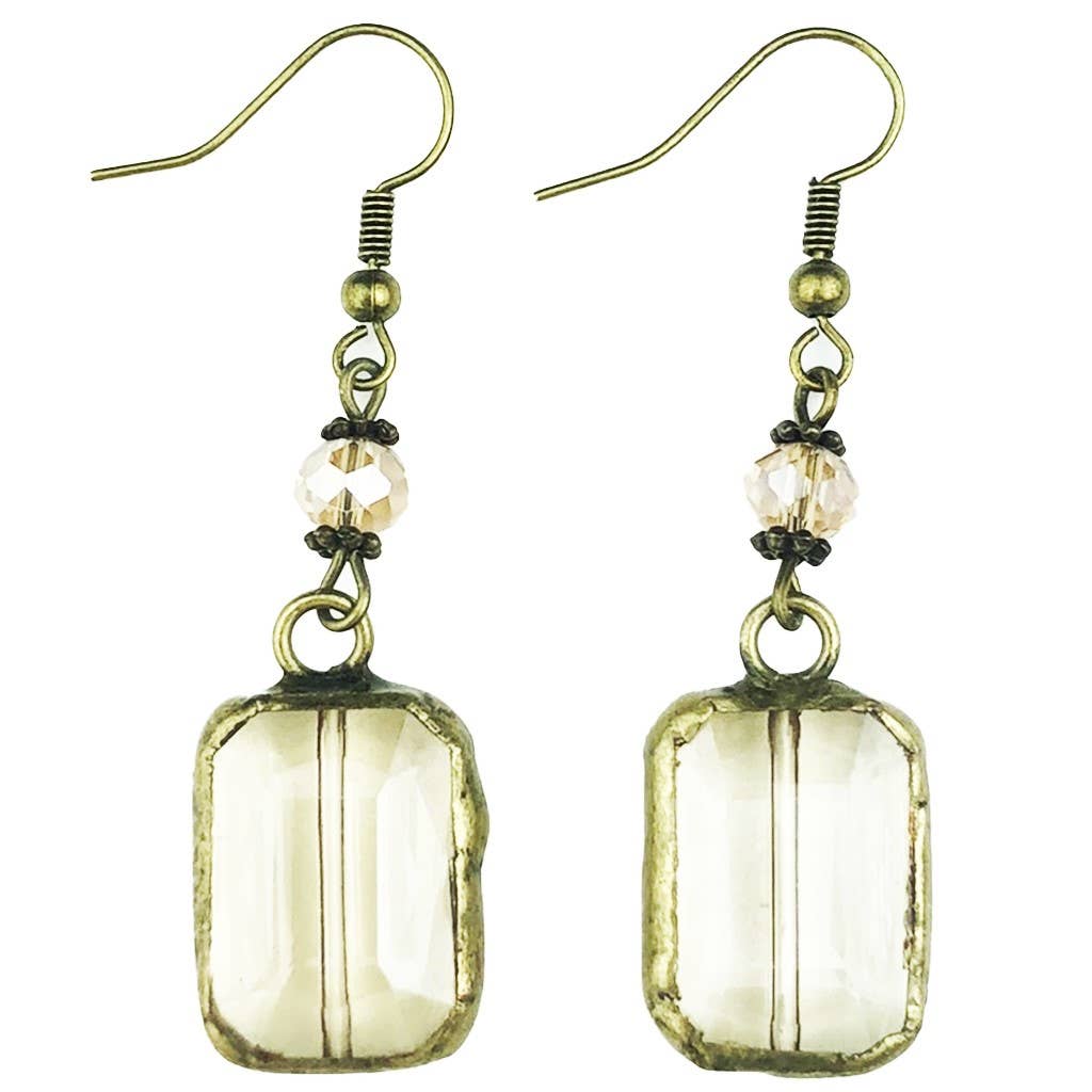 Ava Capri - Delicate Square Crystal Earrings: Champagne is backordered. It will be shipped when back in stock.