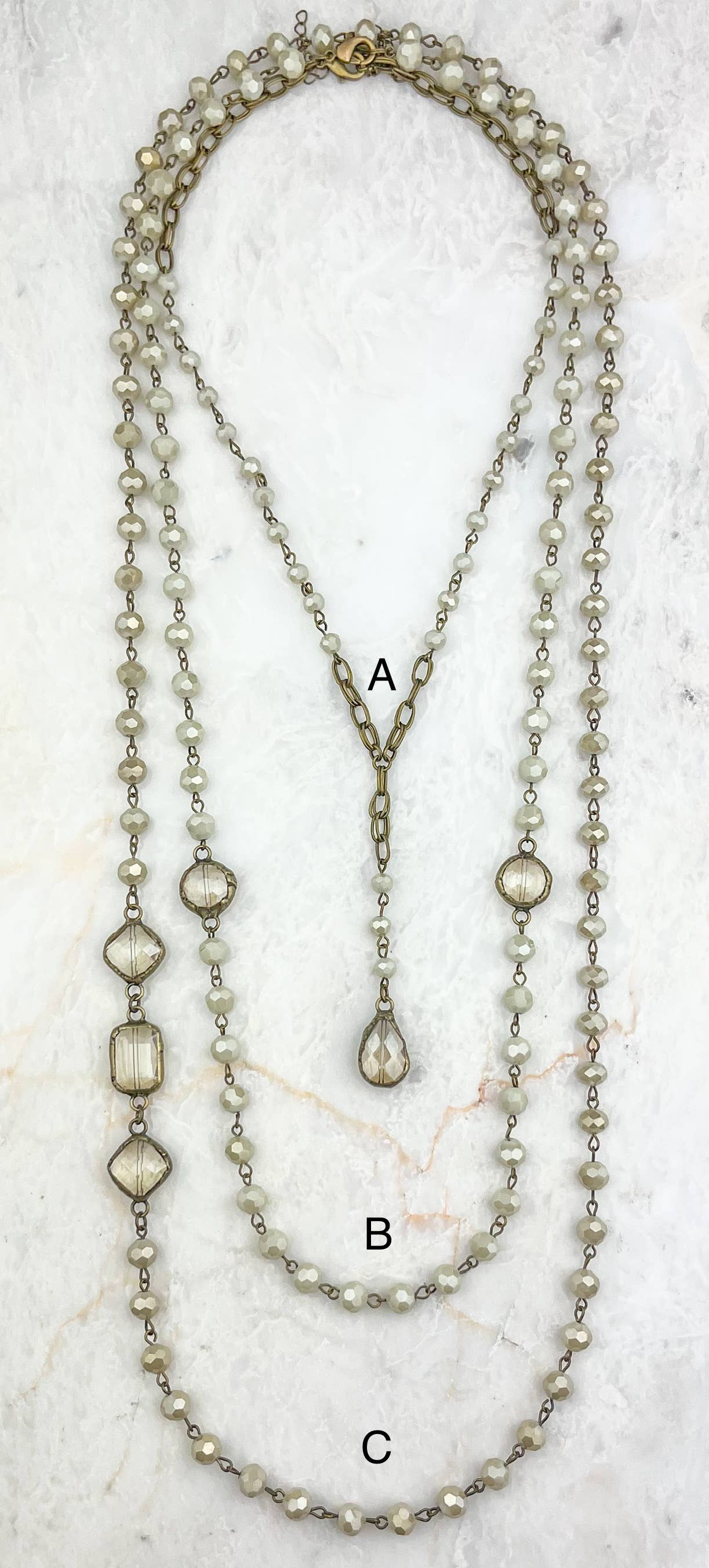 Ava Capri - Ivory/Cream Crystal Necklaces with Crystal Pendant: A - Short Necklace is backordered. It will be shipped when back in stock.