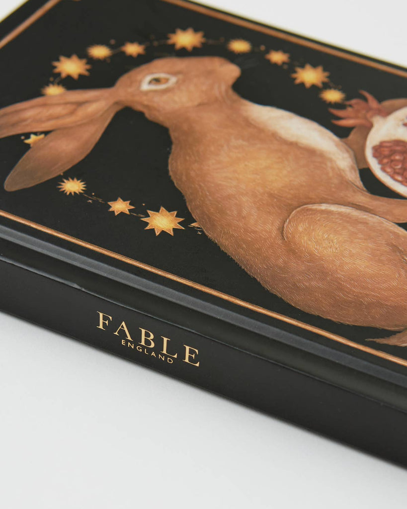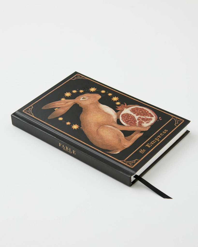 This hardback, A5-ruled notebook is not just a canvas for your thoughts. As you fill the pages with your thoughts and inspirations, you carry a piece of Jessica Roux's artistry, creating a journal that reflects your feminine powers, creativity, and maternal love. Our nature-inspired Tarot Tales Talismans have been designed in collaboration with our special guest artist, Jessica Roux. Together we created a series of six tarot cards that would bring joy (and fingers crossed, some good fortune!), whilst weaving in a little flora and fauna for some extra Fable magic. The Empress is symbolic of creativity, maternal love, and new opportunities. Often represented by hares, The Empress cradles a pomegranate symbolising fertility, surrounded by twelve stars representing her feminine power throughout the year. Key features: A5 Ruled Notebook  Hardback, 100% paper 130g white craft paper 96 pages