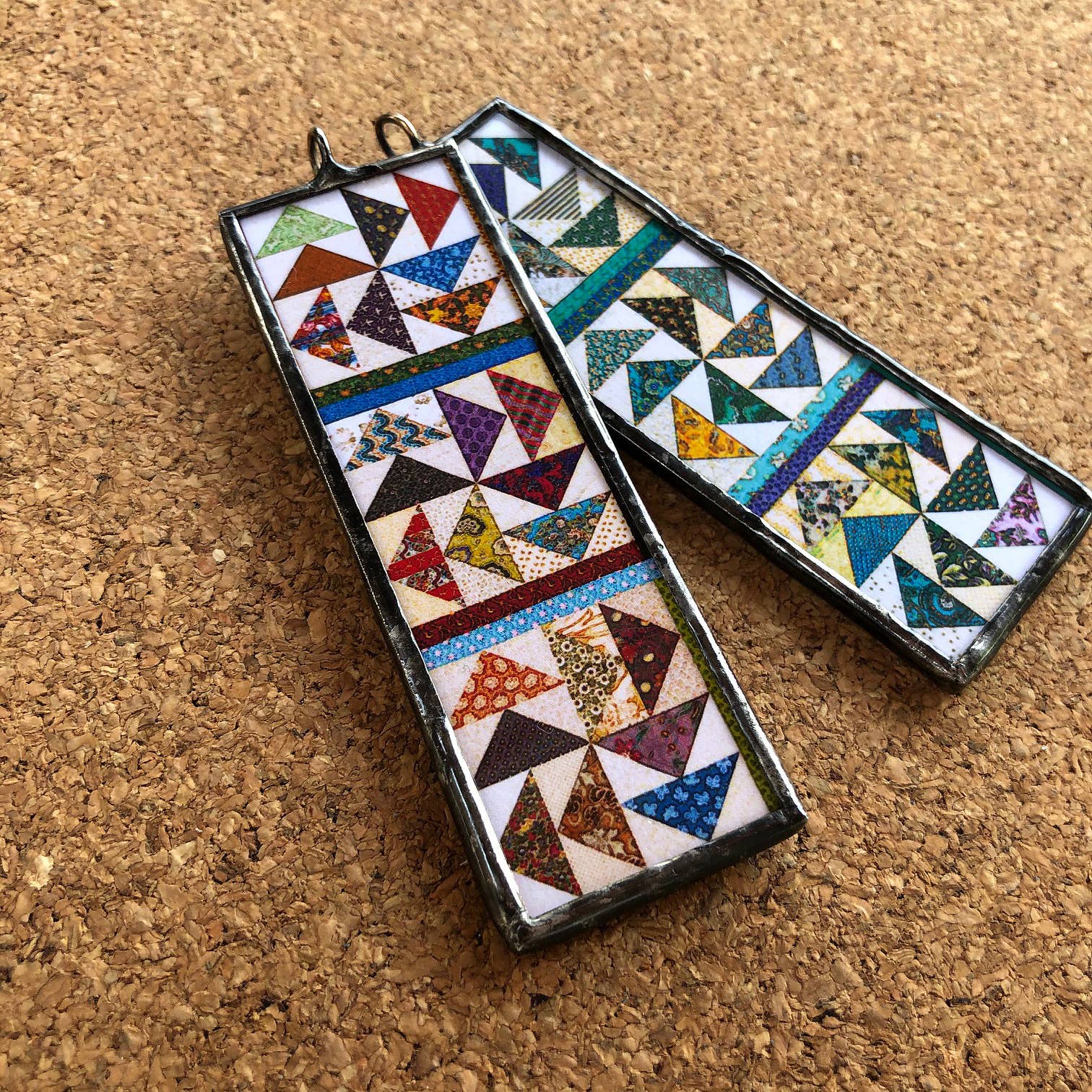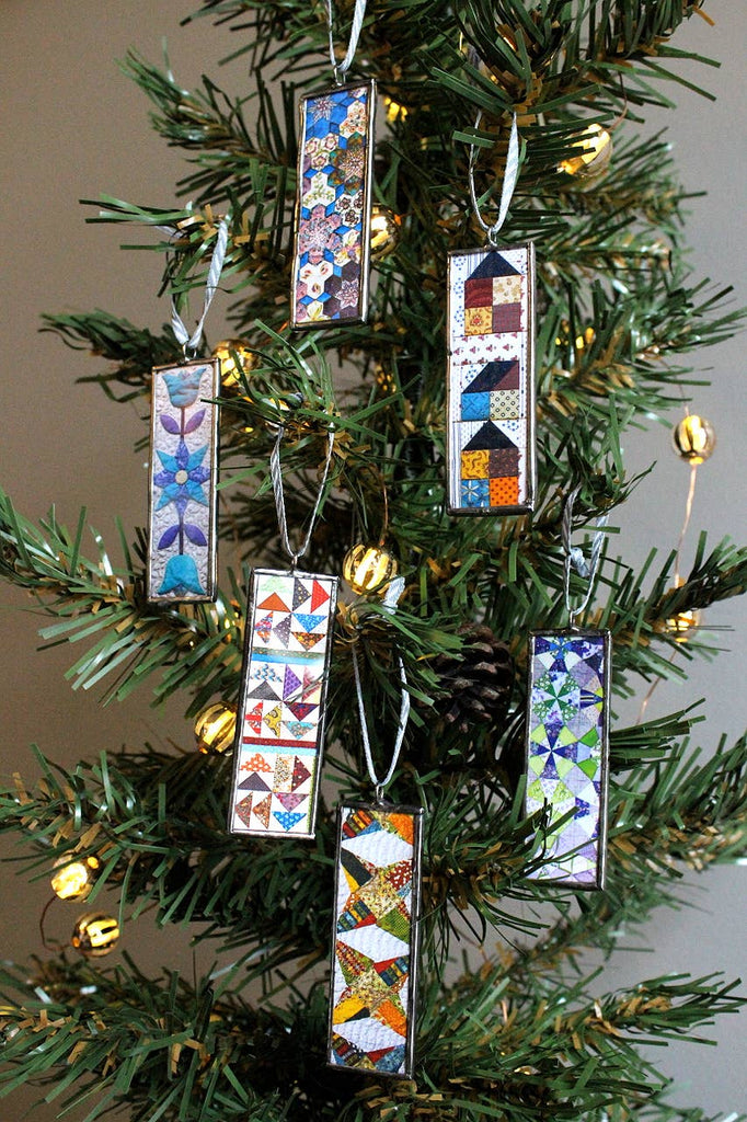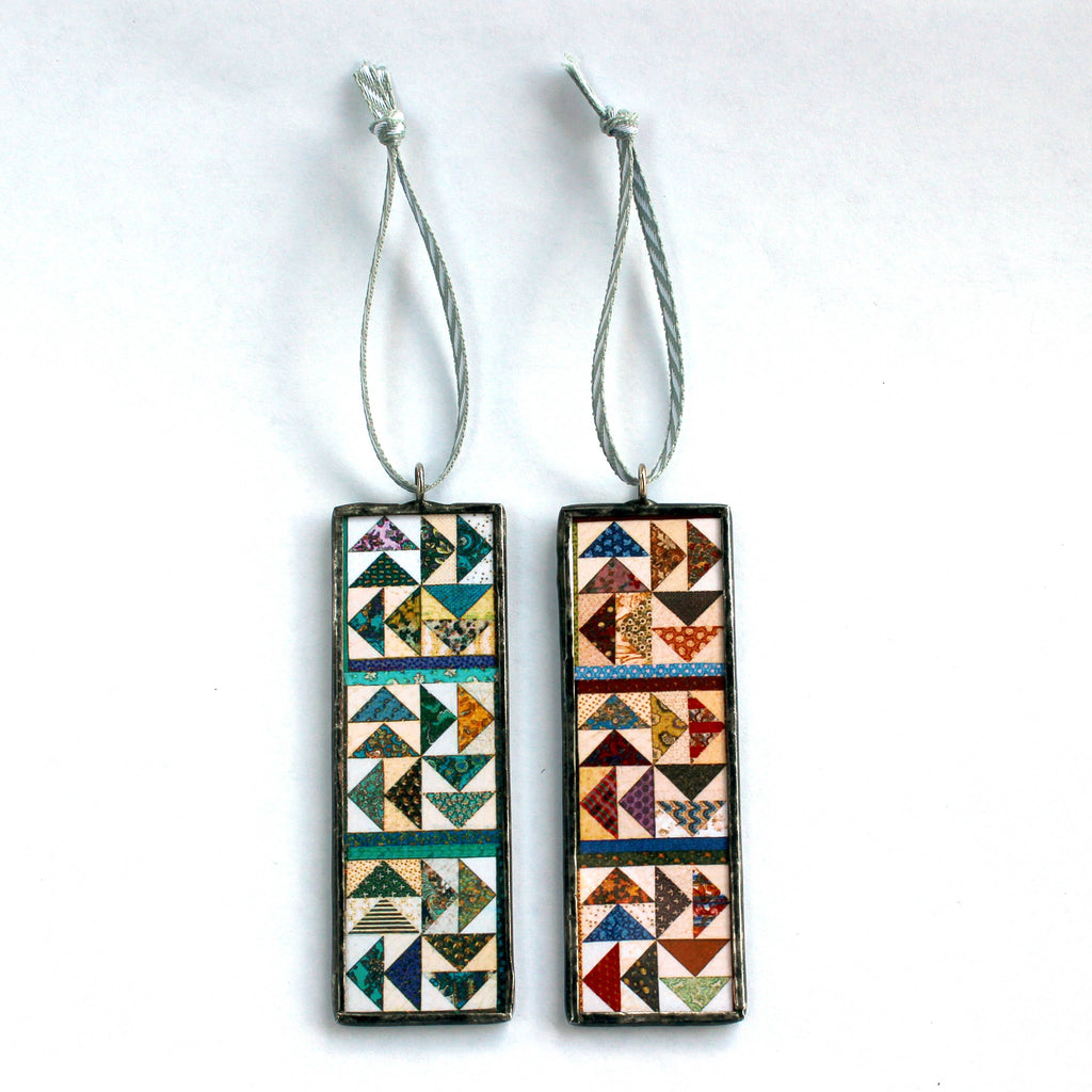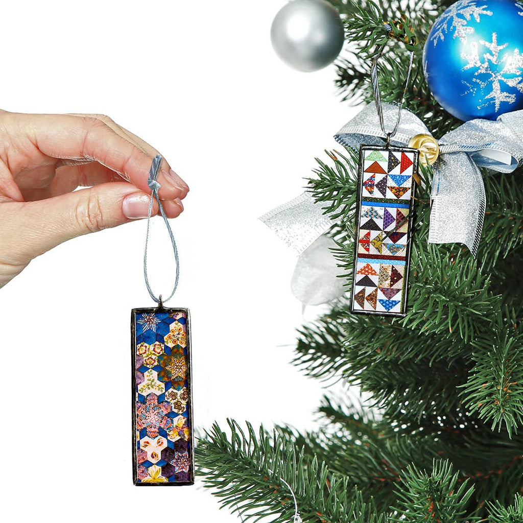 Customers love adding some old world charm to their Christmas trees! These HANDMADE ornaments are so cozy and cute, featuring paper prints of quilt patterns under glass with antique metal trim. (Note: these are not fabric quilts, but designs of paper, glass, and metal.) The reverse side shows a variation on the same quilt pattern. Each ornament is 2-sided; the same pattern but in a different color theme on each side. • Appropriate to display year-round for those quilt aficionados. • Ornament comes with a hanging cord. Merchandising tip: our biggest fans turn these into necklace charms. How beautiful would that be for your customers or their friends? Display one with a simple leather cord necklace to encourage multiple purchases. Size: 3 inches long x 1 inch wide (not including hanging ribbon) Note: Group photos may show multiple patterns that are available to order. This item is for the specific pattern listed.