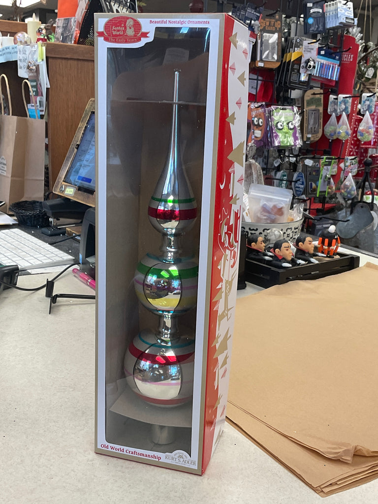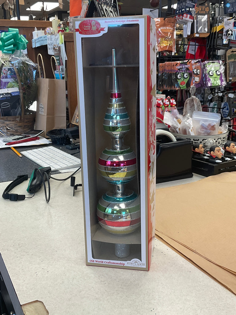 Kurt S. Adler, Inc. - 13"EARLY YEARS GLASS TREE TOPPER 2/A - Thin Color Bands is backordered. It will be shipped when back in stock.