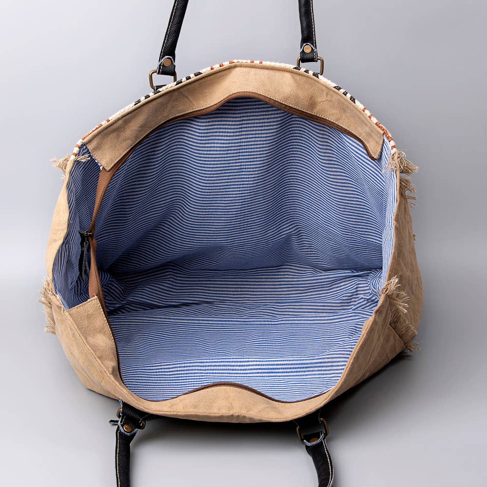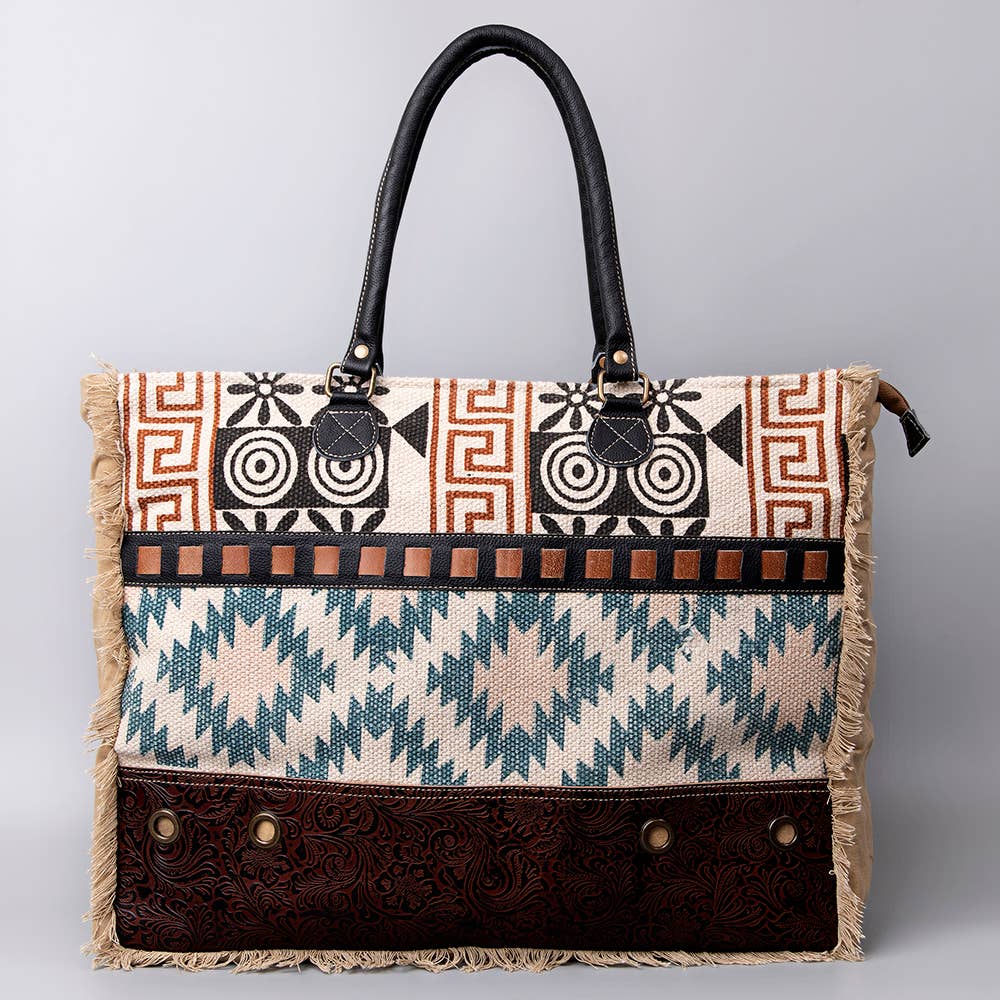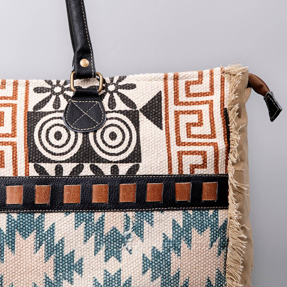 Leather and Upcycled Canvas Ladies Bag 20 x 16