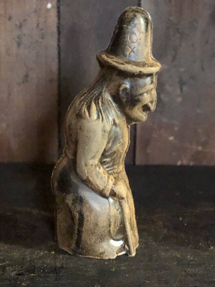 In love with this witch. I just purchased this antique chocolate mold this year from Belgium and haven't seen one like it before. She can be covered in spices which not only smell wonderful but brings out the details.
