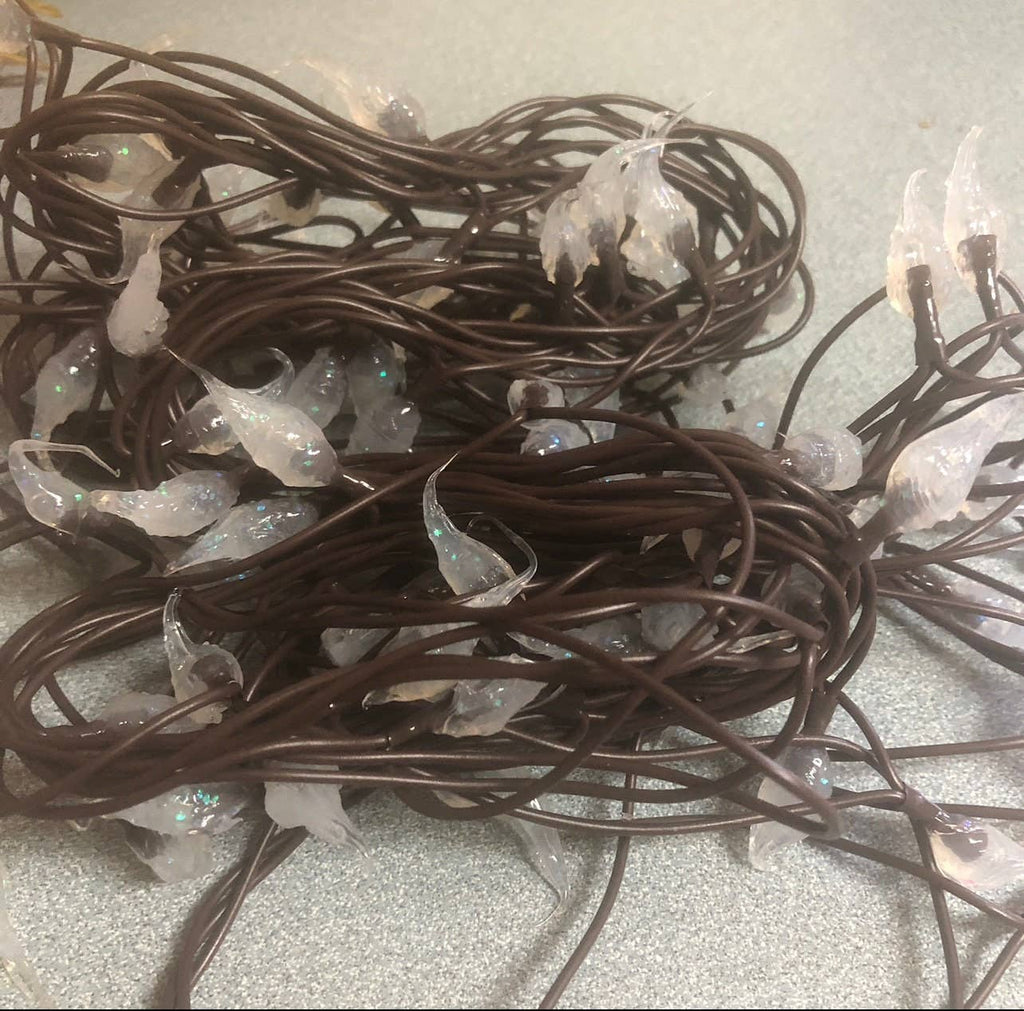 Raggedy Junction Clear Primitive Silicone Teeny Rice Lights Electric. Each teeny rice light is hand dipped in a colored silicone. Make sure you check out all of the different colors and lengths available. If one light happens to go out, the rest of the lights will stay lit. Approx: Rice light lengths Electric 20ct is 5 feet 35ct is 7.5 feet 50ct is 10 feet 100ct is 19.5 feet 140ct is 26 feet Battery 35ct 7.5 feet 50ct 9 feet