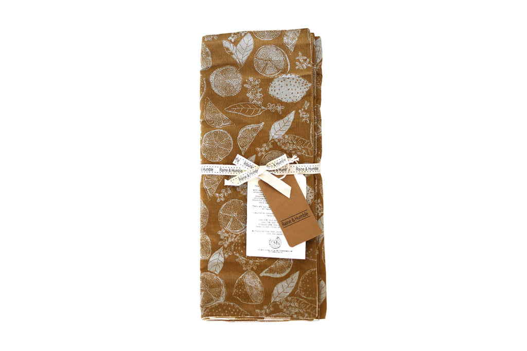 100% recycled fiber table runners are reversible featuring the Marmalade print on one side and the wide stripe on the reverse. Pairs well with the matching or contrasting napkins from this collection.