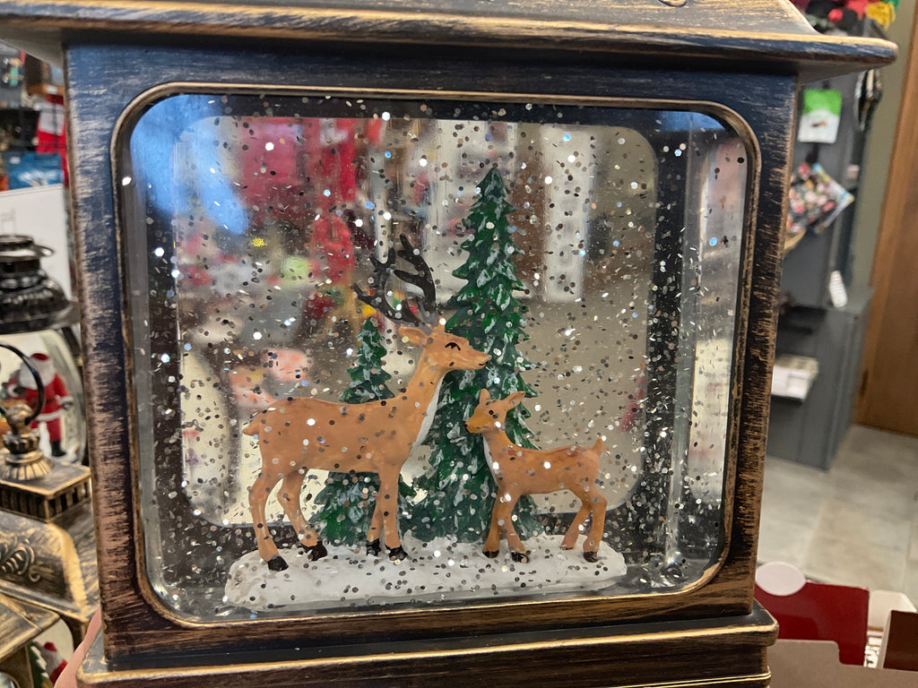 Christmas 9.4"H B/O Lighted Holiday Spinning Water Globe Lantern, 3 Asst (Dc Compat. / USB Cord Incl.)