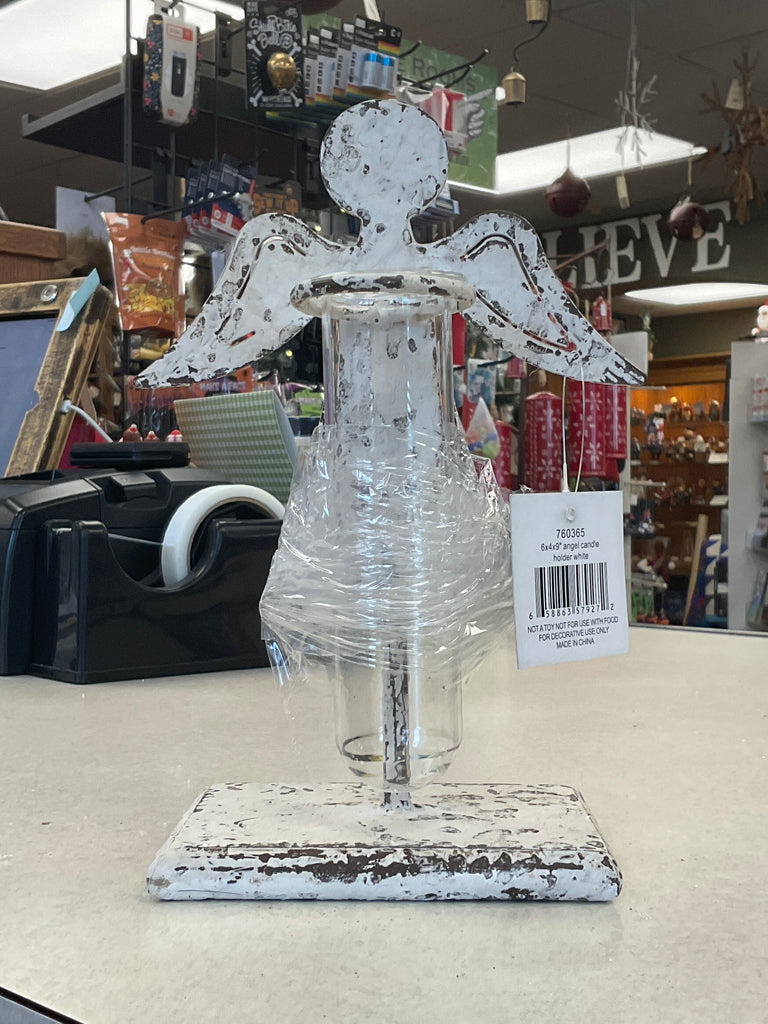 Angel Candle Holder, White (6 x 4 x 9”) [Shea’s Wildflower Co.]