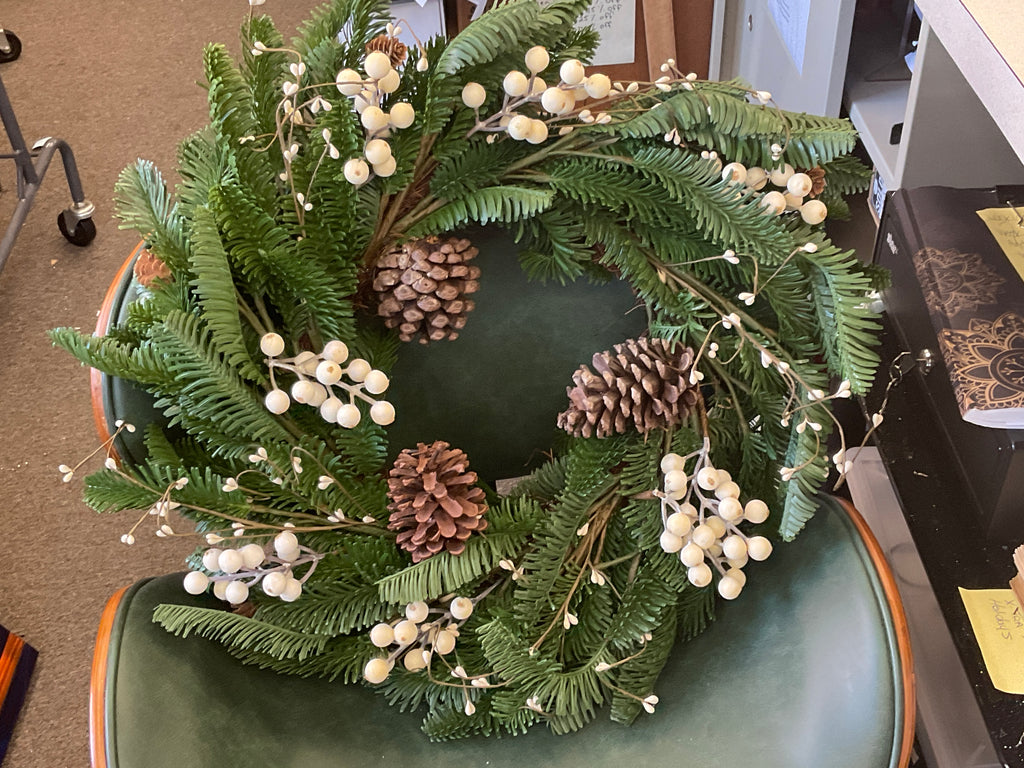 White Berry Evergreen Wreath 24” (Shea’s Wildflower Co.)