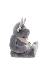 Crafted from luxuriously soft grey plush with lighter accents, Cobblestone has a soft beard, curved horns, and friendly expression which give him unmistakable character. Broad paws and detailed stitching add to his solid, comforting presence. He’s a true gentle giant, strong, steady, and full of heart. His non-jointed, machine-washable design makes him easy to care for and always ready for another day by your side.