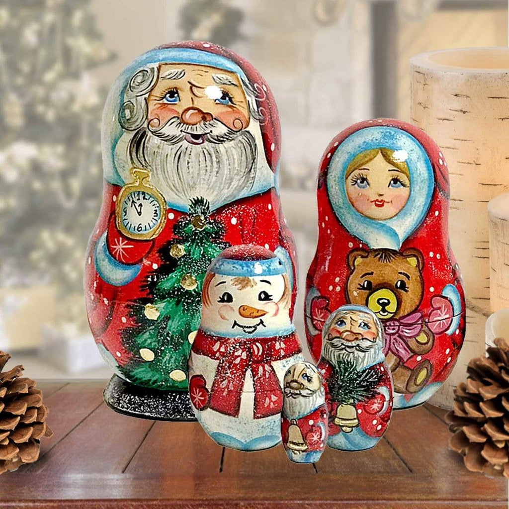 Santa Family Tree Matreshka Nesting Handpainted Doll Set 5