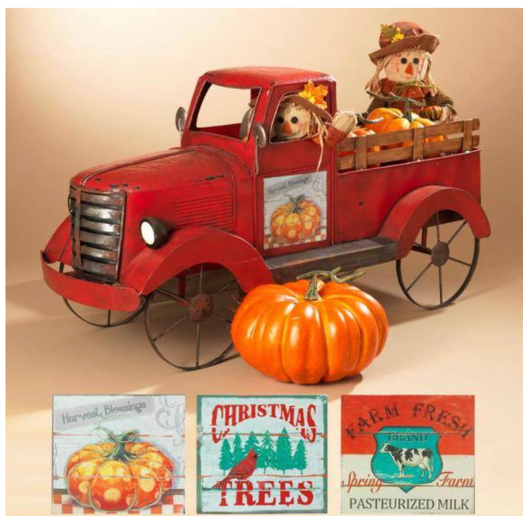 RED PICK UP TRUCK with seasonal door magnets