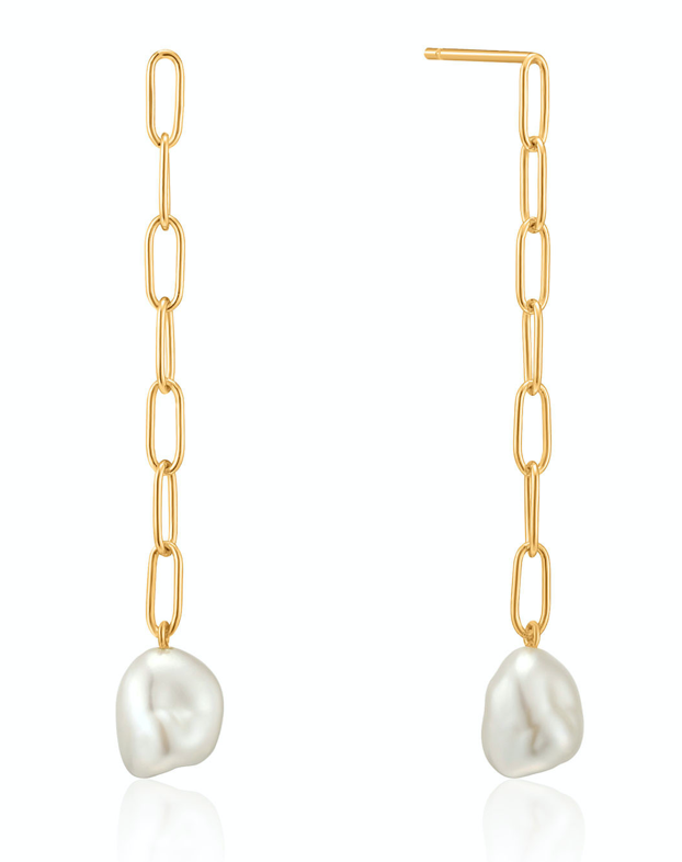 Get runway ready in an instant with these striking gold drop earrings. Combining this season’s on-trend chunky gold chains with our baroque fresh water pearls, this pair of droplet earrings takes minimal styling and adds an unmistakable luxe edge. The centrepiece for any chic look, they’re the perfect balance of classic romance and unique style.
