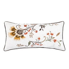 Capture the excitement of the swirling leaves of fall with the Autumn Bloom Pillow. With detailed floral embroidery on a crisp white background, all framed by a decorative piped edge, this pillow is rich yet airy. Pair this beautifully detailed lumbar pillow with coordinating accents and textiles for a elegant and sophisticated look. Crafted with a linen/cotton blend cover and polyester filling for loftiness. Spot clean.