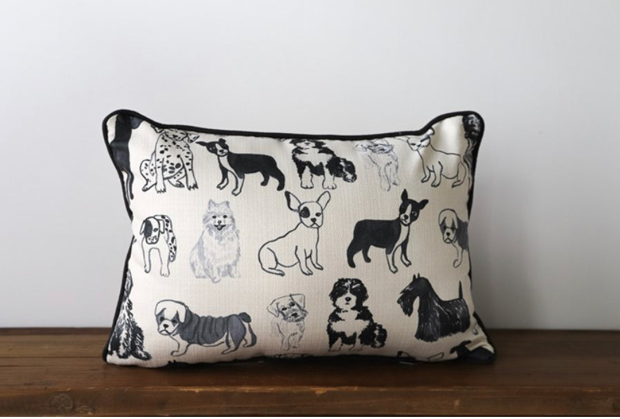 Whether you're a dog lover or a crazy cat lady- represent your furry friends in your home with our Pet Collection. Designed and manufactured in Calhoun City, Mississippi, Little Birdie pillows are the perfect way to cozy up any space! All of our pillows are made from a soft yet durable polyester fabric, and arrive stuffed with poly-fill and sewn shut. Our designs are dyed directly into the fabric, so they won't peel or crack. Square pillows measure approximately 17 x 17” and lumbar pillows are approximately 20 x 14.” Add colored piping to any pillow to give it an extra pop! Pillows are machine washable (Cold water, Delicate Cycle- Fluff, and Air Dry Flat).