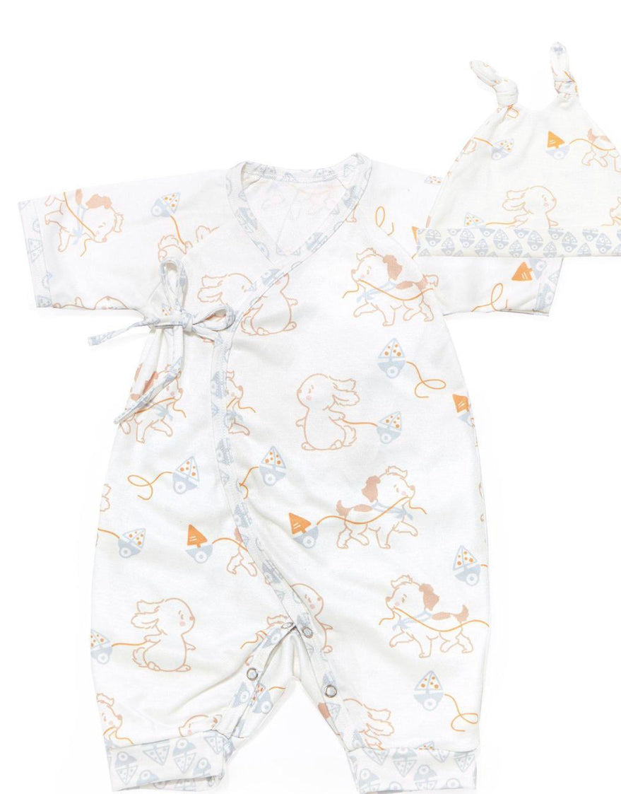 Too cute for words, this is the perfect newborn clothing set for the newest little bunny girl in the bunch. This soft, cozy, and convenient cotton knit kimono-style short sleeve romper and the matching cap have unique de-tails for fashion, function, and fun.