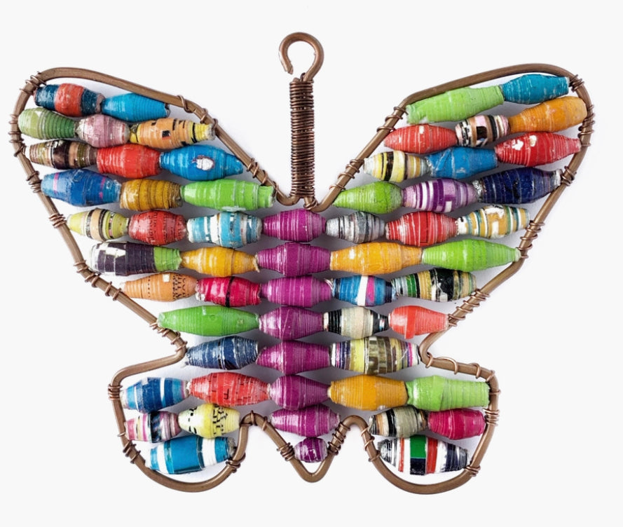 Ornaments 4 Orphans by artisans in Uganda, East Africa. Colorful beads are rolled from strips of recycled paper, turning something ordinary into something extraordinary! This special ornament will hold a prominent place on your Christmas tree! Dimensions: 3.5" high x 4" wide. Materials: Recycled paper, copper wire, seed beads. Country of Origin: Uganda. Ornaments 4 Orphans is a member of the Fair Trade Federation. Every purchase strengthens families, enriches communities, and helps orphans and vulnerable children in the areas the items are sourced.
