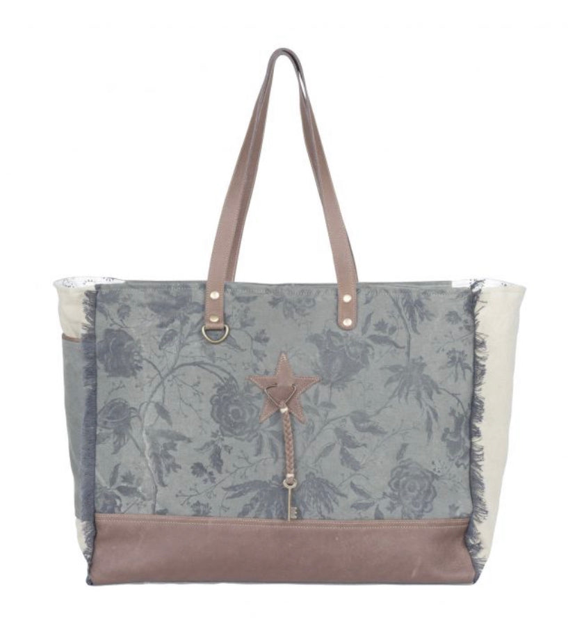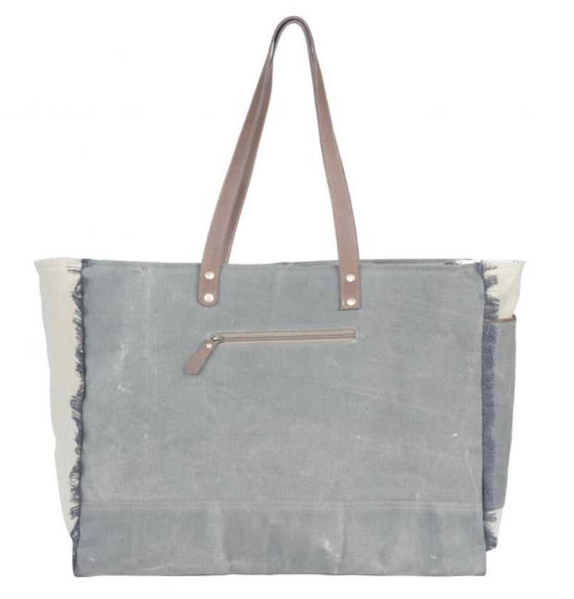 A dark gray and brown coloured weekender bag, this spacious accessory will look great on those who want to keep a mysterious aura around.