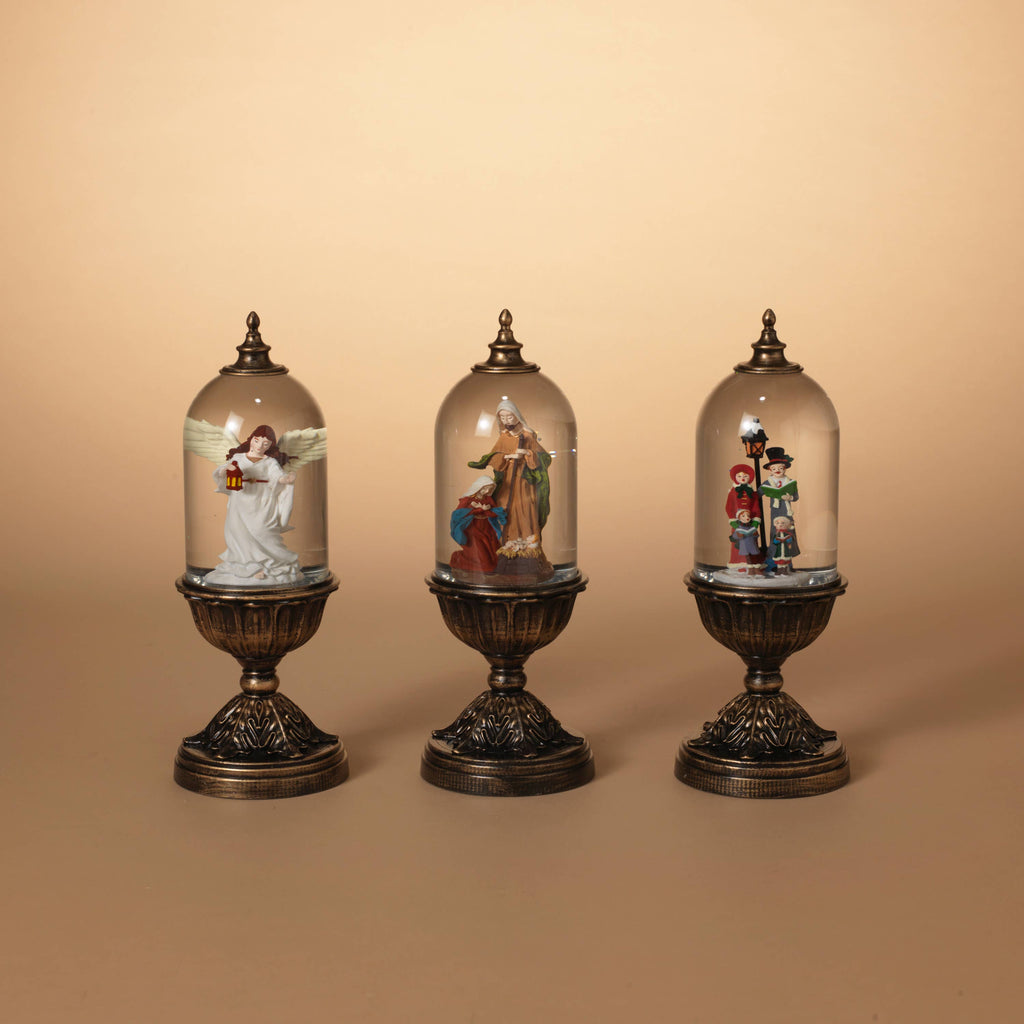 11.5"H B/O Lighted Spinning Water Globe w/ Holiday Figurine, 3 Asst