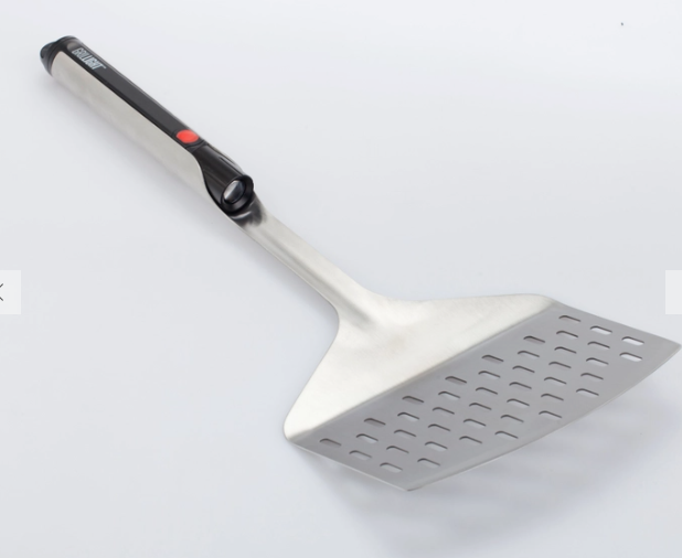 Premium stainless steel 2 in 1 oversized grill spatula with built in LED flashlight. Great for fall tailgates, evening BBQ, and camping. Restaurant grade stainless steel and custom flashlight with ideal illumination technology which perfectly replicates sunlight. Lifetime warranty. Wide surface (8 inches!) for easily cooking delicate fish and large pieces of meat 18? long High-output Ideal Illumination™ LED flashlight built into handle Waterproof flashlight Restaurant grade 304 stainless steel