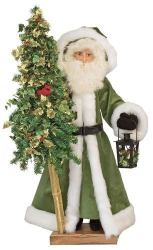 This wonderful 29” Father Christmas is lighted and stands proudly on your table or mantle. An exquisite addition to your holiday home. Heirloom quality. Exceptional.