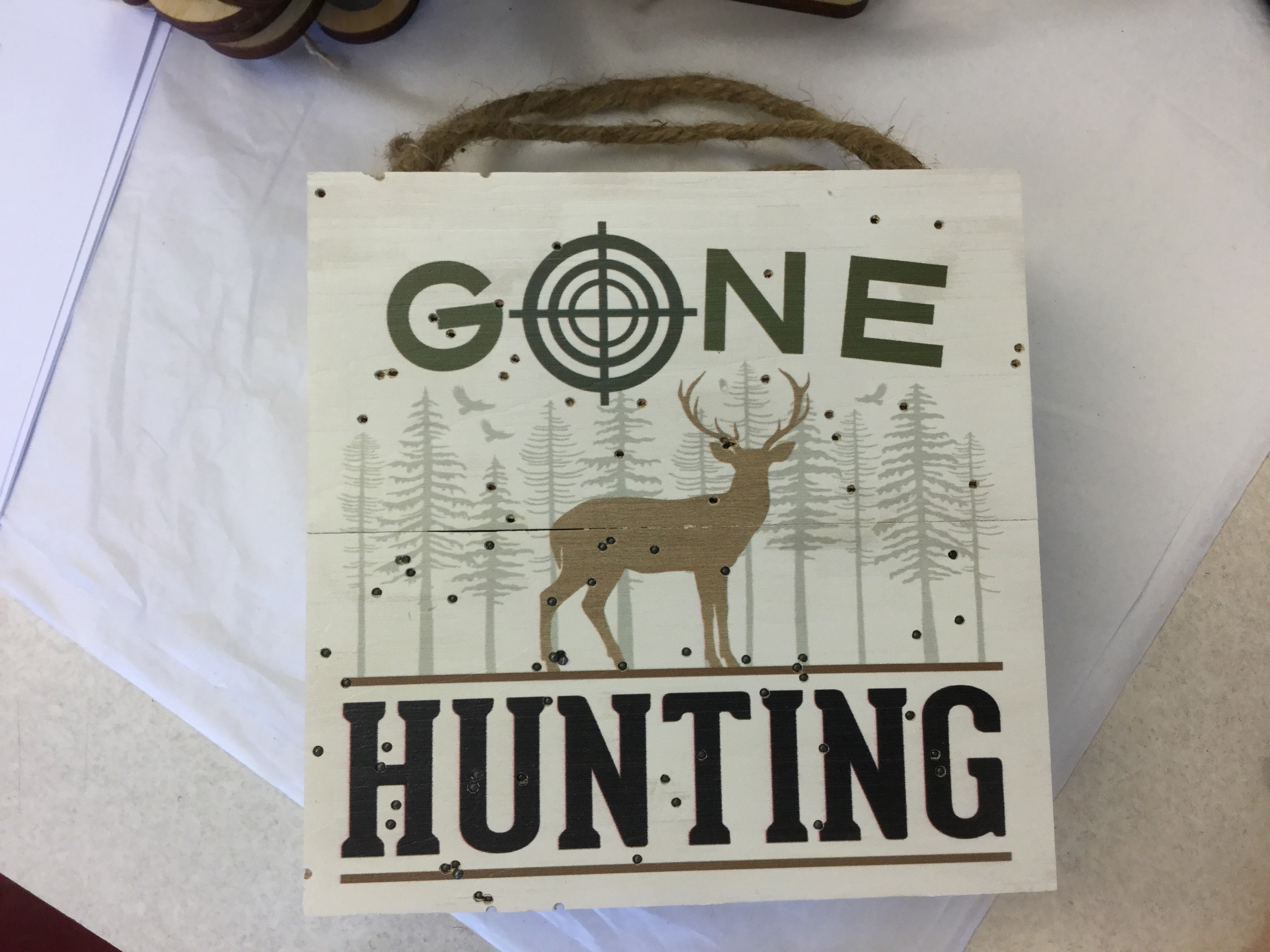 GONE HUNTING - 7x7 Sign