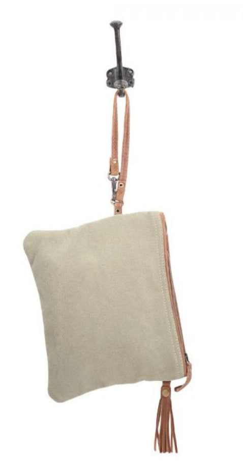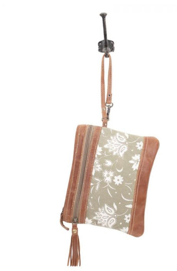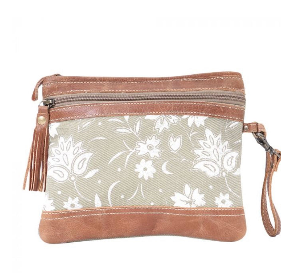 Flower print canvas and leather small bag that can hold, mobile phone, wallet, cosmetic, and other daily things.
