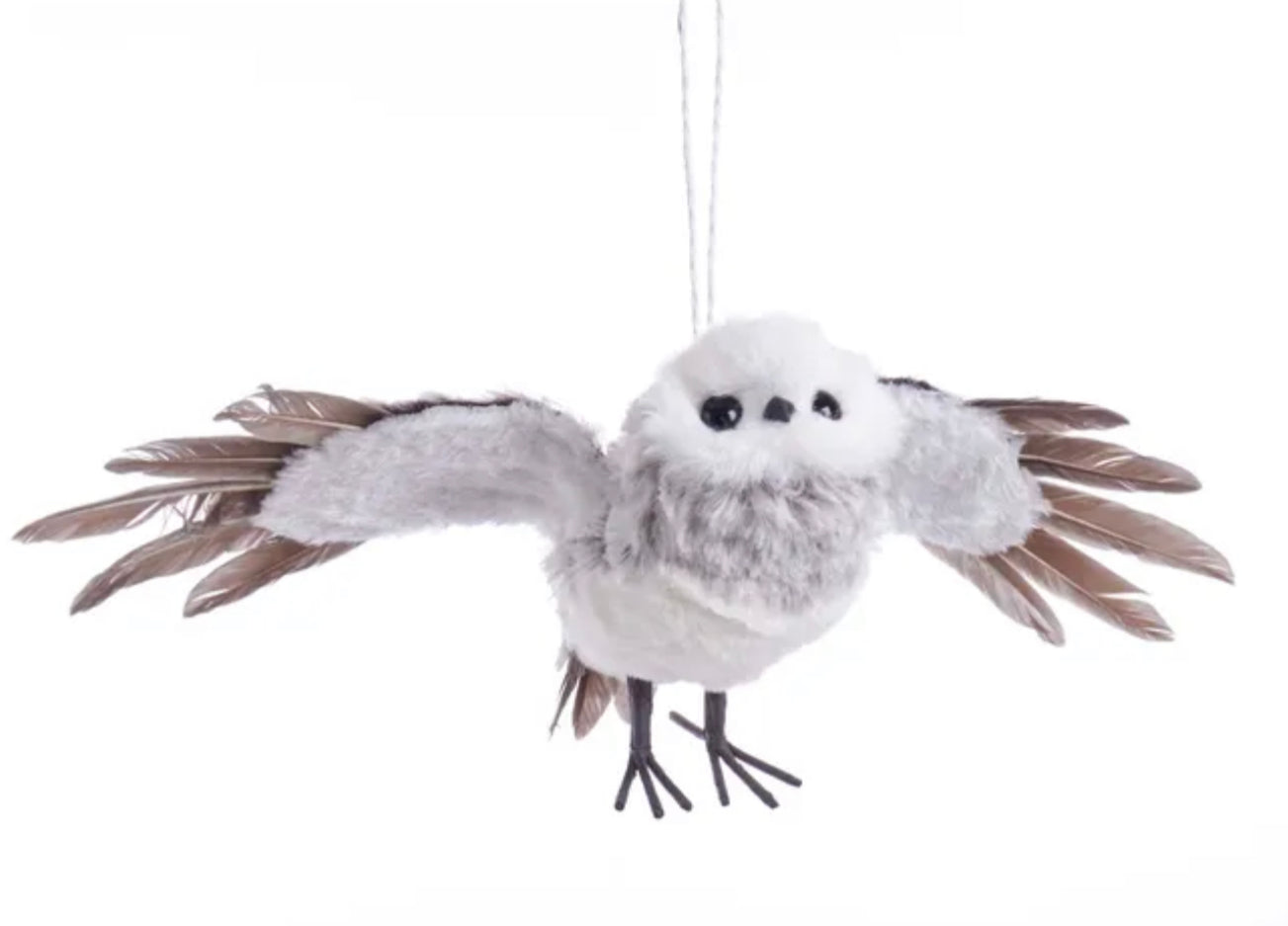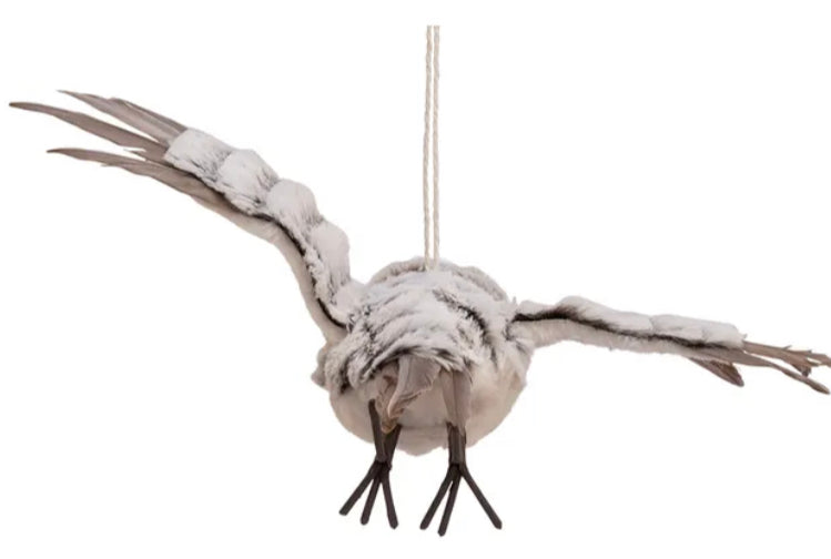 This flying owl ornament from Kurt Adler is a beautiful addition to your home or holiday decor. The owl features grey feathers with white fur and is in a flying pose with its wings outstretched