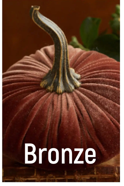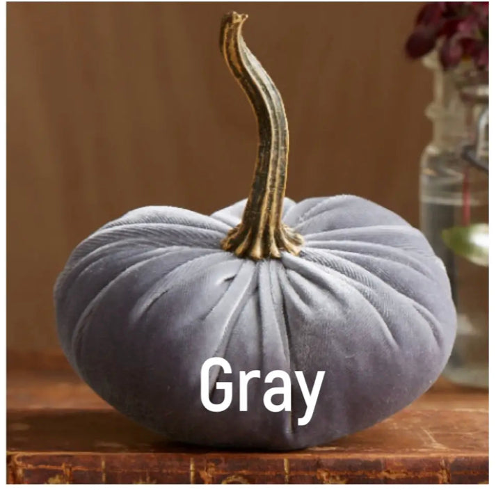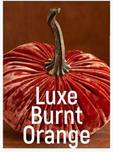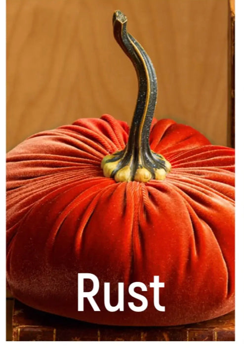 Handmade large velvet pumpkins add sophistication to any home. The stem is resin, realistic, and very durable. Each large pumpkin measures approximately 6.25" wide x 3.25" tall, PLUS the 4.37" tall stem. All are handmade in my small studio in Wisconsin.