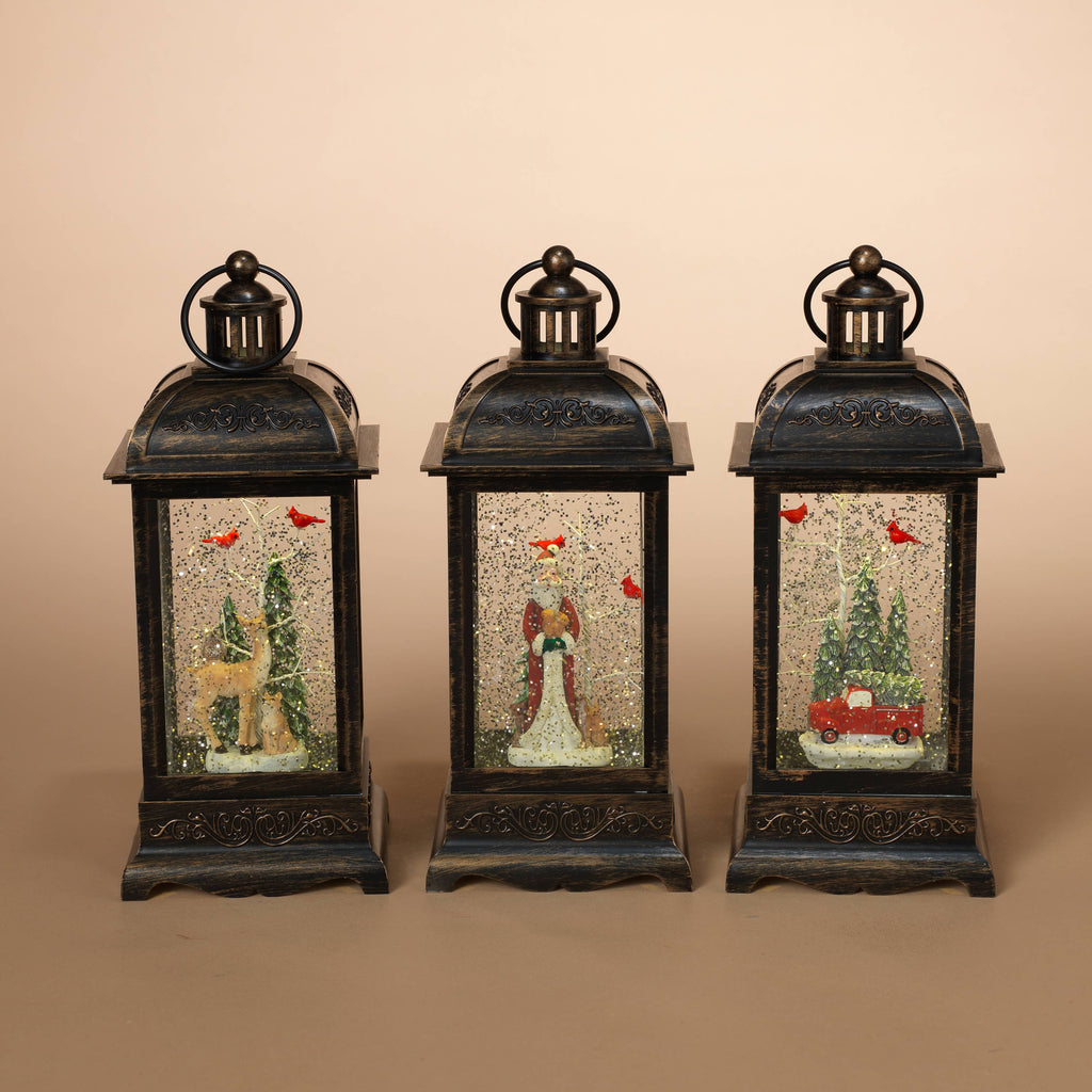 10.5"H B/O Lighted Spinning Water Globe w/ Holiday Scene & Timer, 3 Asst