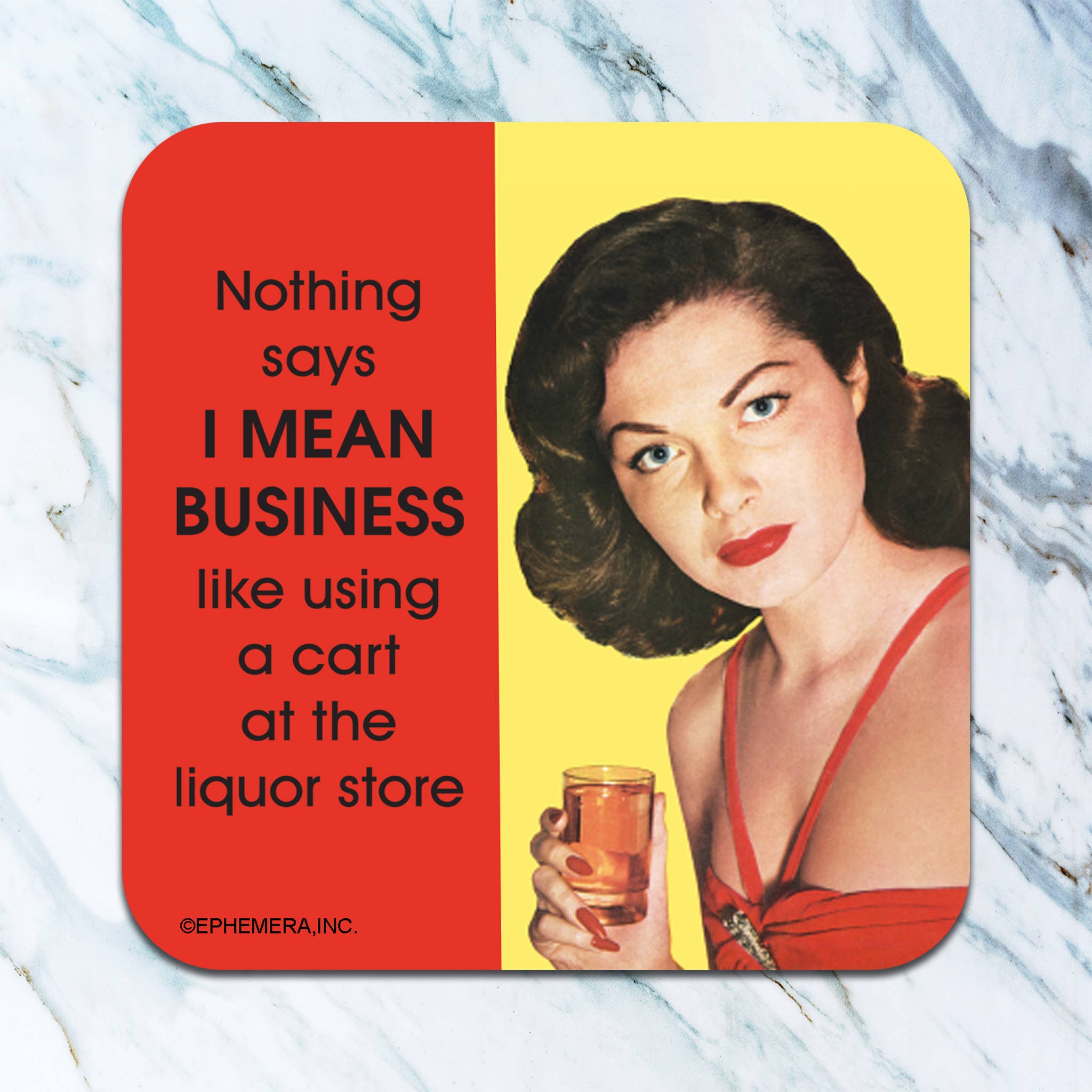 Our coasters are made in the USA from absorbent, neoprene-like material and measure 4" x 4". They are dishwasher safe and reusable (what a deal).