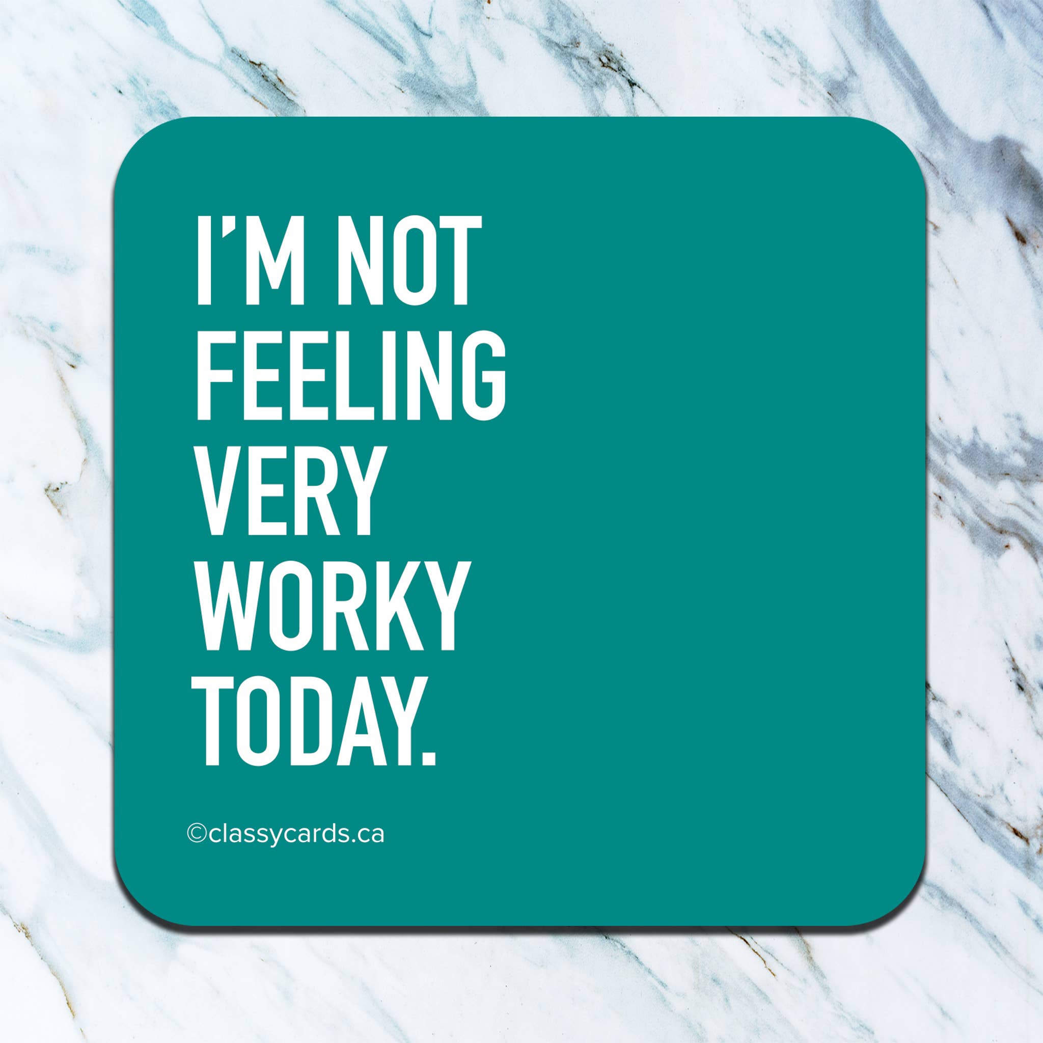 Our coasters are made in the USA from absorbent, neoprene-like material and measure 4" x 4". They are dishwasher safe and reusable (what a deal).
