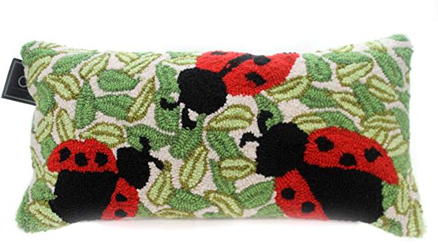 Bring a cheerful touch to any room with this hooked pillow from C&F Home. Three Red lady bugs rest atop a bed of green leaves on this cotton hand-hooked pillow, a perfect accent for any decor.