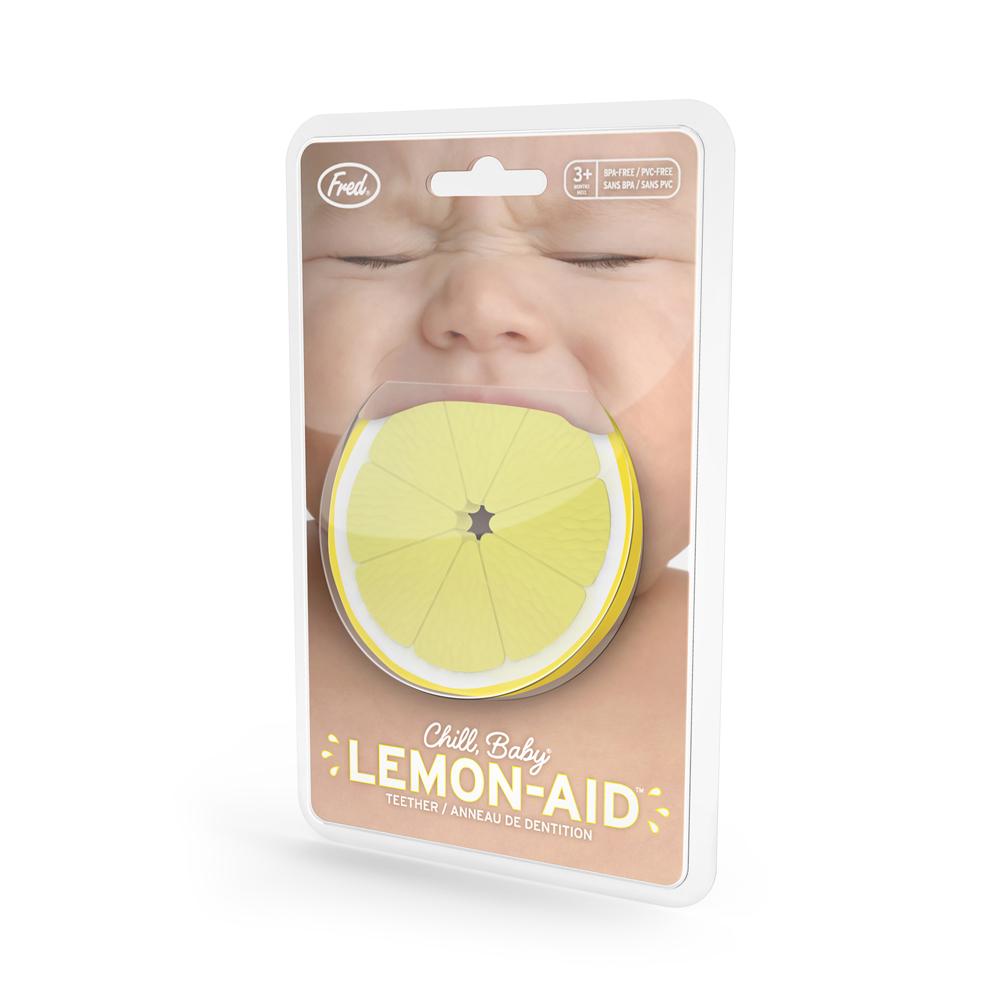 If life gives baby lemons, hopefully it's Fred's LEMON-AID teether. Take the edge off tooth pain with this durable, 100% pure, BPA-free silicone teether. It's dishwasher safe.