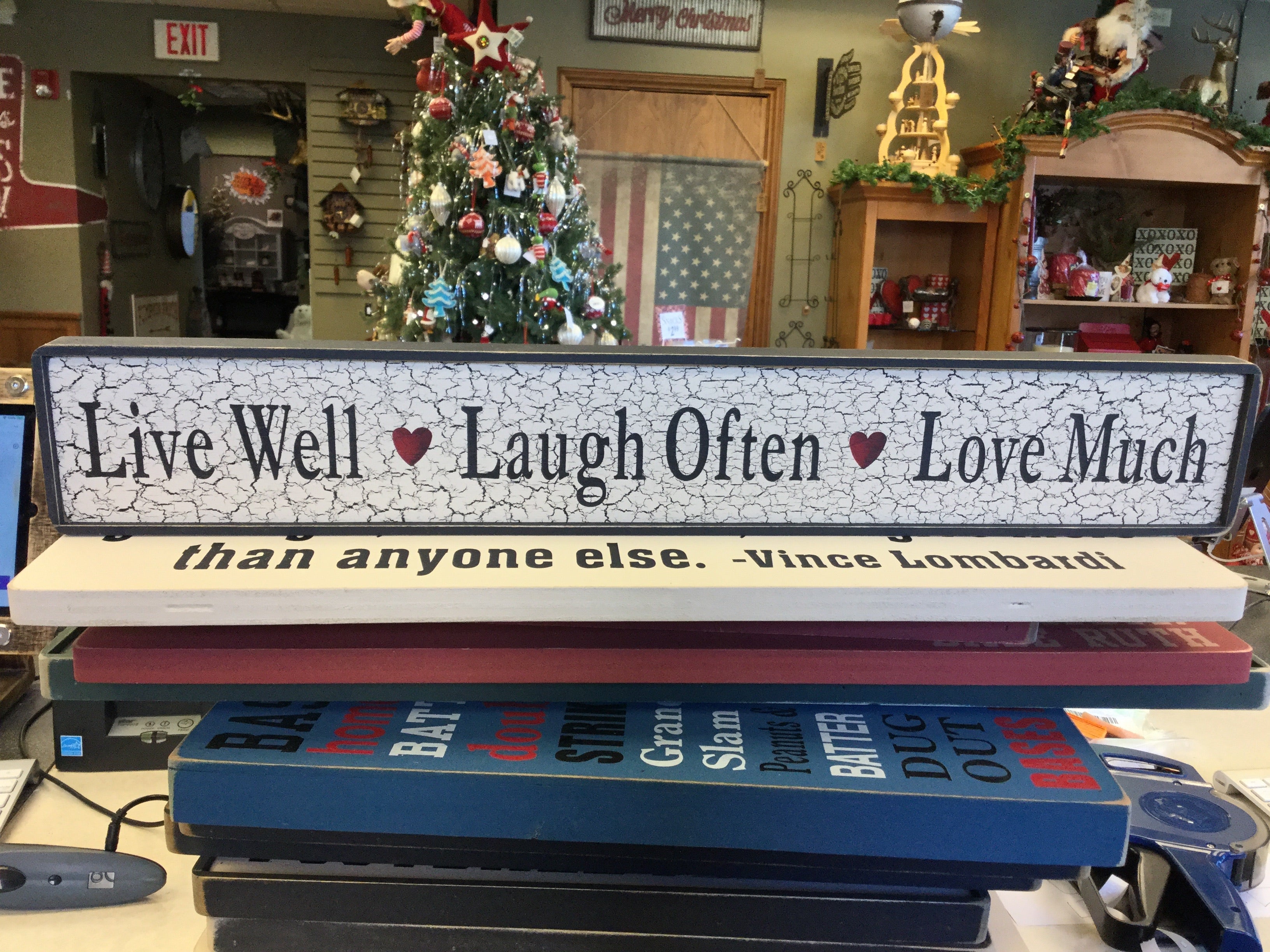 LIVE WELL • LAUGH OFTEN • LOVE DEEPLY wooden sign