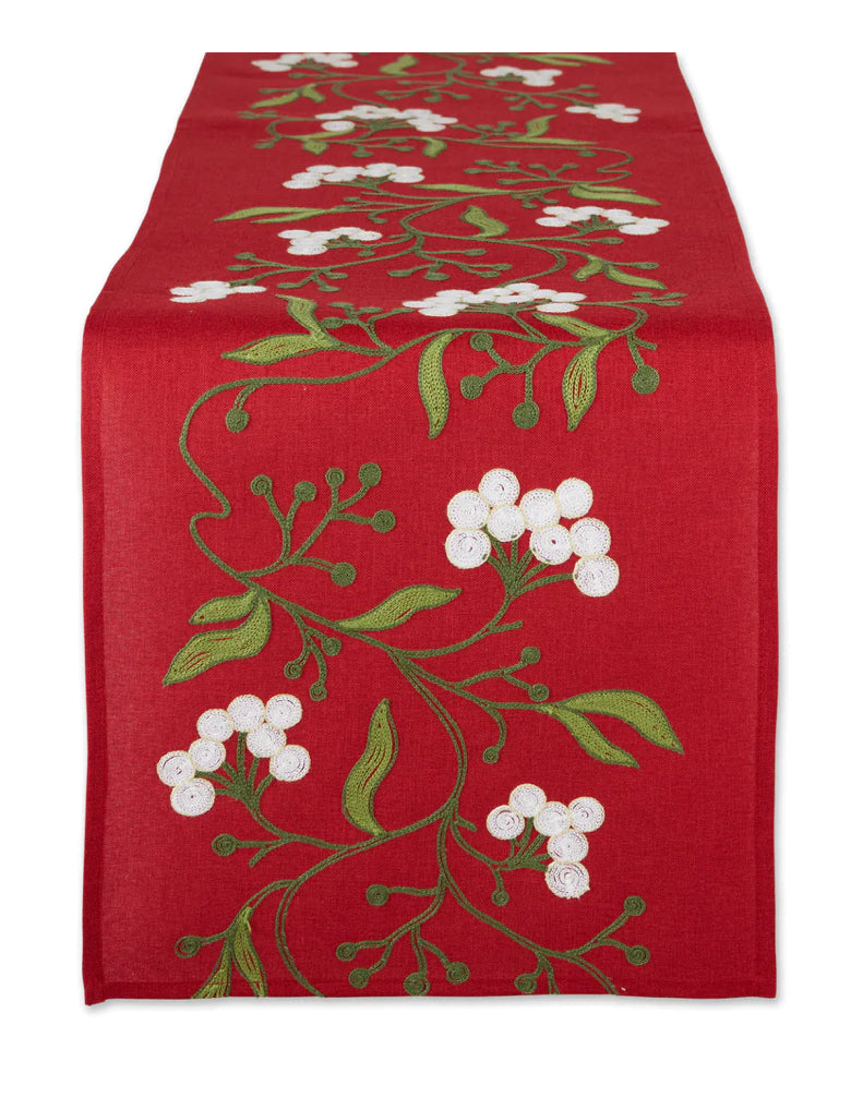 MISTLETOE EMBROIDERED Table Runner by Design Imports
