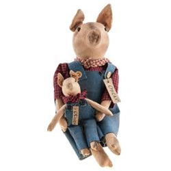 Oscar and Oliver are a pair of adorable, father and son, country pigs. Each pig wears a pair of denim overalls and a red gingham shirt or scarf. Pigs are made with distressed fabric for an aged, rustic look. Oscar measures 16" high (10" high when seated). Oliver measures 8" high (5" high when seated).