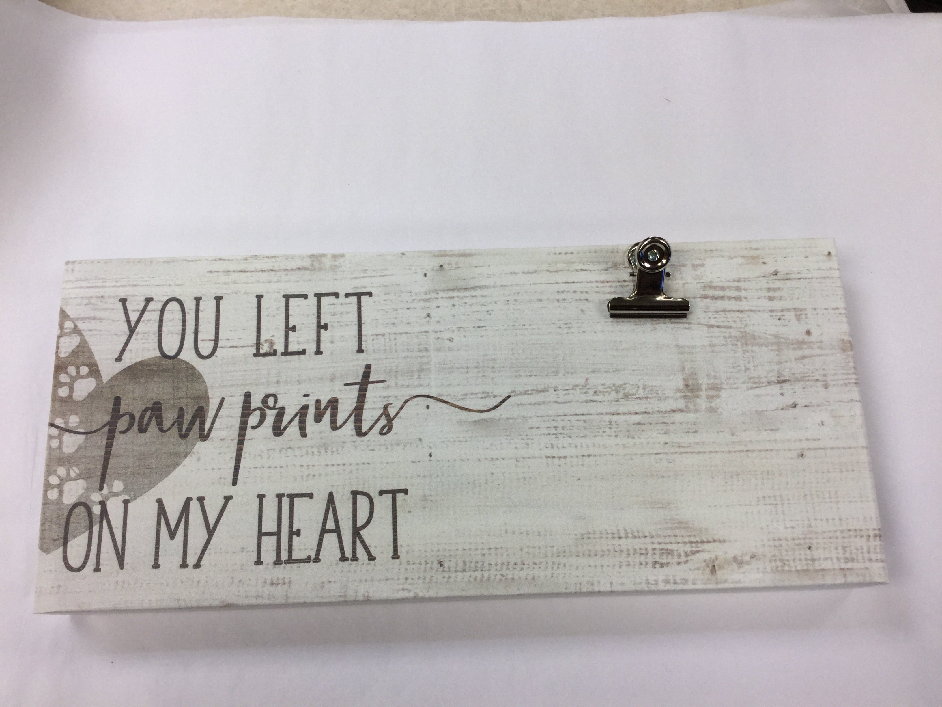 SINCERE SURROUNDINGS WOODEN SIGN WITH CLIP - YOU LEFT PAW PRINTS ON MY HEART