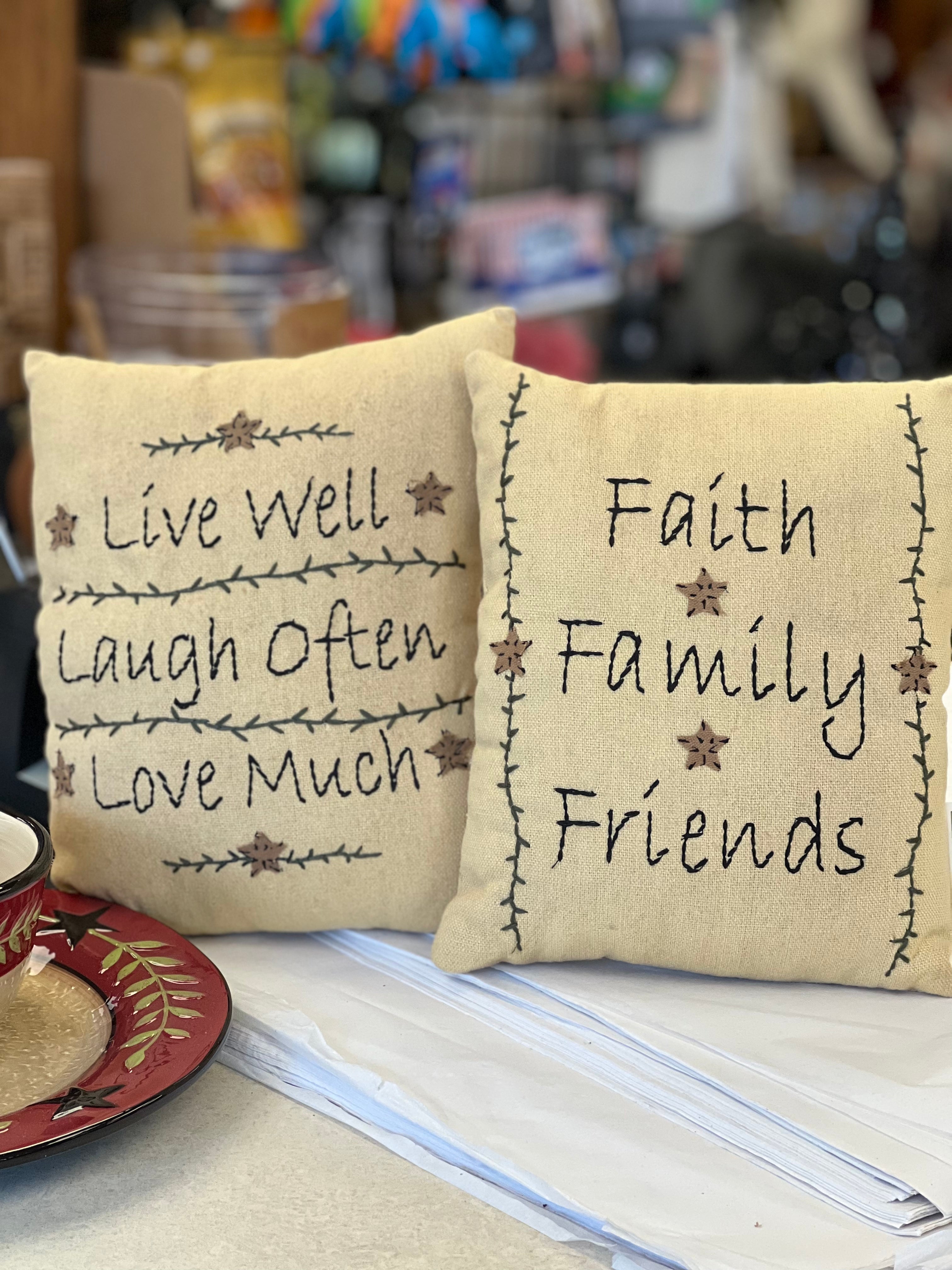 Country Accent Pillows Choose from either FAITH, FAMILY FRIENDS