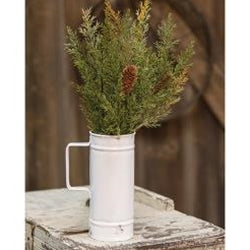 Prickly Pine Pick, 14” has short, artificial pine needles that have begun to yellow at the ends, adding a natural coloration to this rustic pick. It has several small pinecones scattered among its branches and measures 14” high.