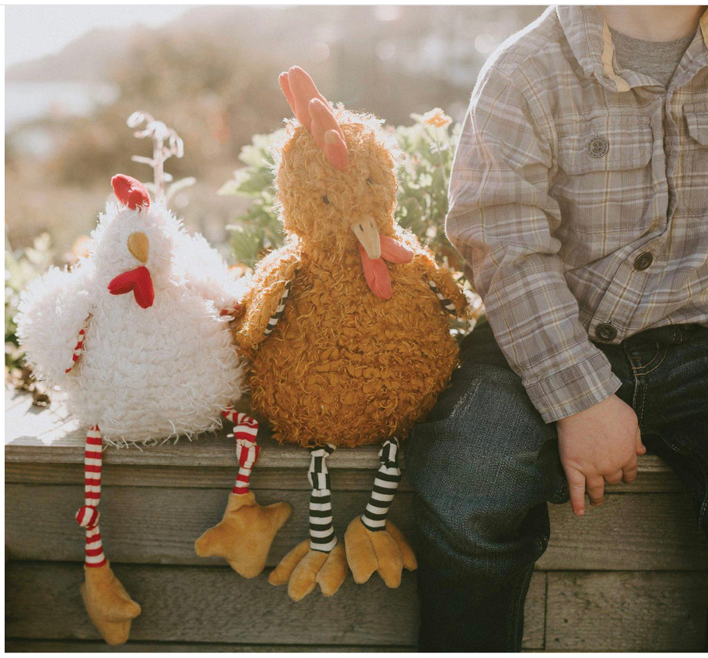 Randy the Rooster is one cool stuffed bird, with 14" of scraggly burnt orange fur plush cuddliness. Super soft and friendly for the little ones with hand-embroidered features, and also chic enough for farmhouse decor.