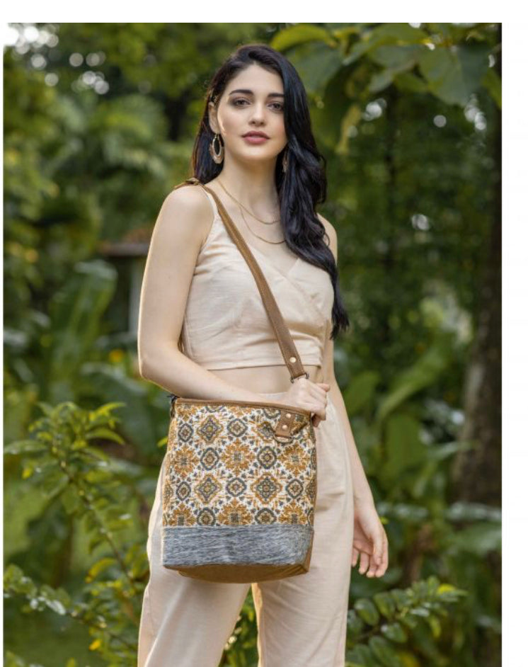 Perfect way to style a casual dress with this elegantly designed tan coloured bag. Flaunt this bag with a unique rug print every evening.