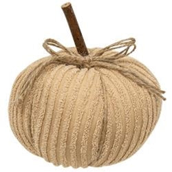 This stuffed Cream Chenille Pumpkin figure is just what you need to spice up a space. It has a stick stem wrapped with a jute twine bow to add a pop of country charm and would look darling next to a lamp or placed in a basket with fall foliage. Its neutral color will really help accent oranges and golds. It measures 7" with the stem and has 6" diameter.