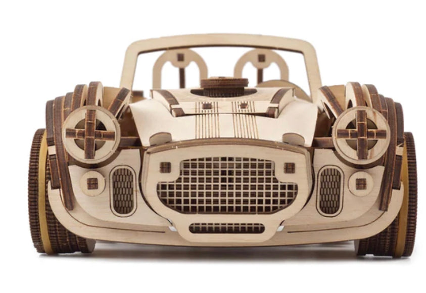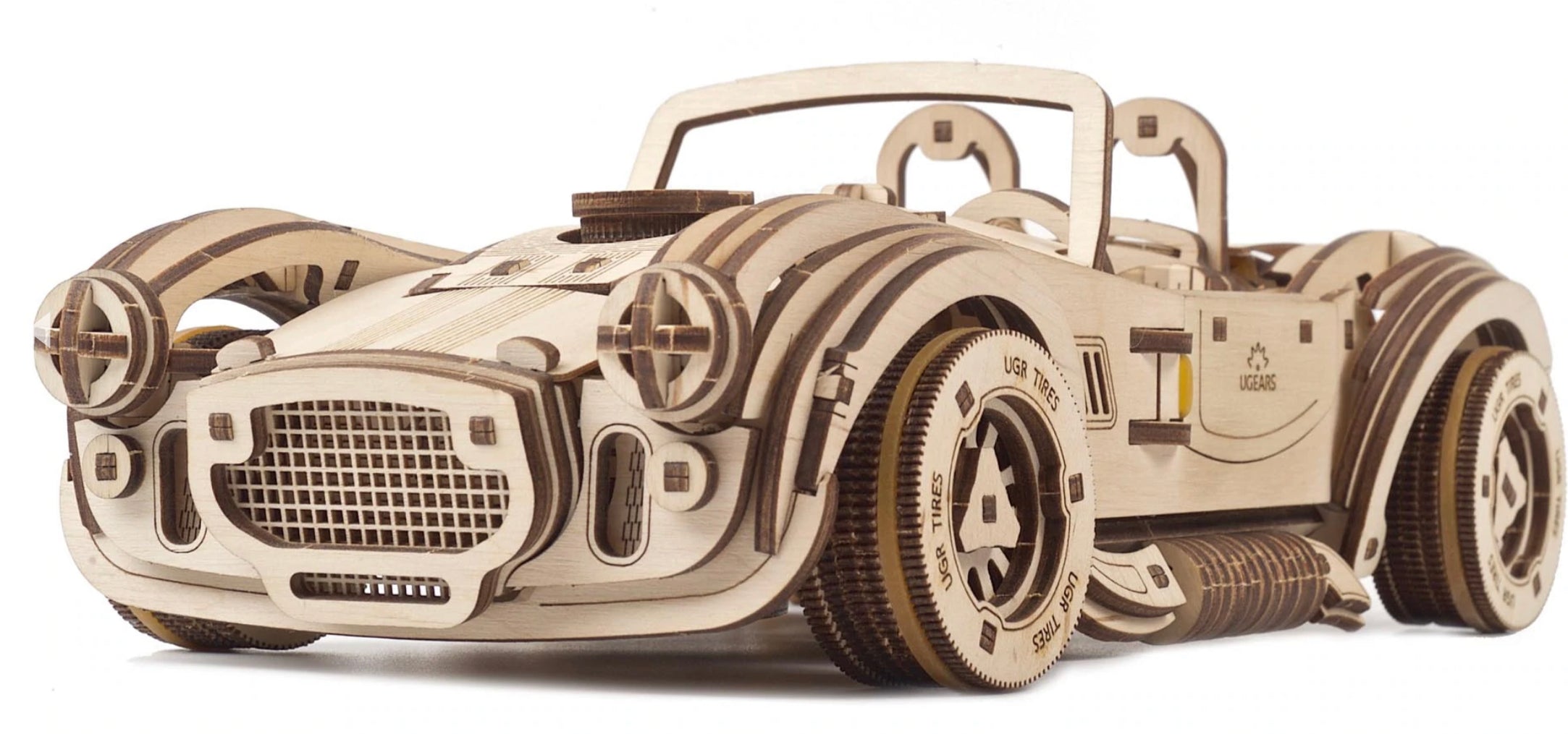 We know you love car modeling and you love the Ugears Dream Cabriolet, Roadster, and U-9 Grand Prix. Well, make room on the shelf, because a powerful new mechanical model just muscled its way into the Ugears Automotive collection. Introducing the Drift Cobra Racing Car model kit, a beautifully styled, two-seat convertible—our twist on what may be the most revered sports car of all time: the Shelby Cobra 427. The Cobra 427, produced between 1965-67, had a 7.0 liter 450-510 horsepower engine, did 0-60 mph in just over 4 seconds, and had a top speed of 185 mph.