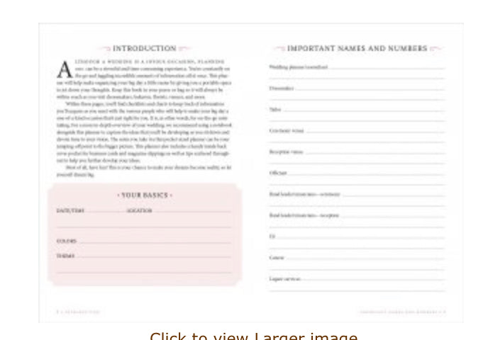 • Concise fill-in lists and charts enable you to compile the essential information you need to stay on track as you plan pre-wedding gatherings, the big day itself, and beyond.