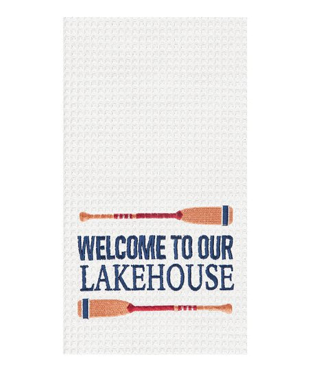 Mix up your dish towel collection with the machine-washable LAKEHOUSE inspired design featuring an embroidered message.
