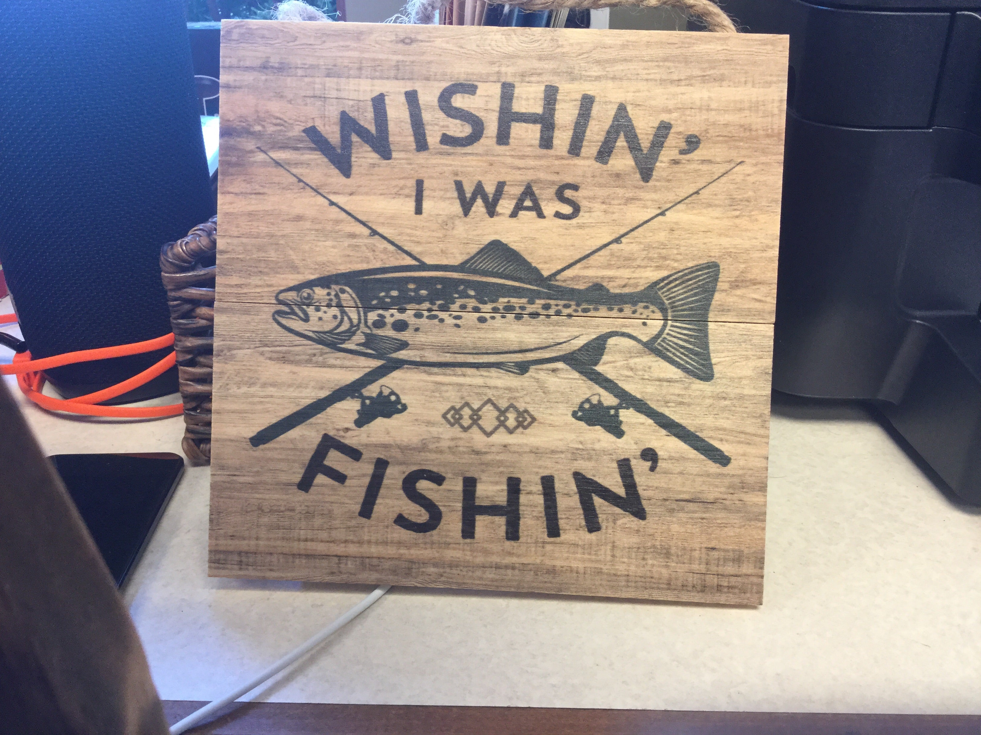 WISHIN I WAS FISHIN WOODEN SIGN MEASURES 7”X7”