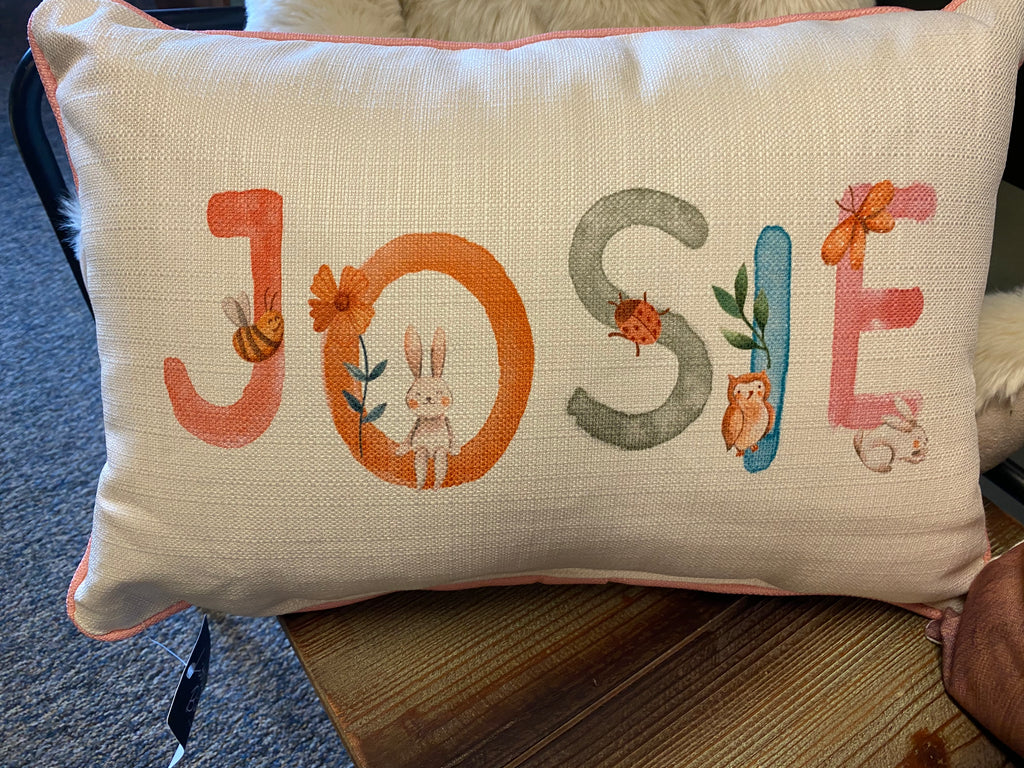 Call to customize your pillow. Piping color and name. 3-4 week lead time is necessary. 518-673-0292