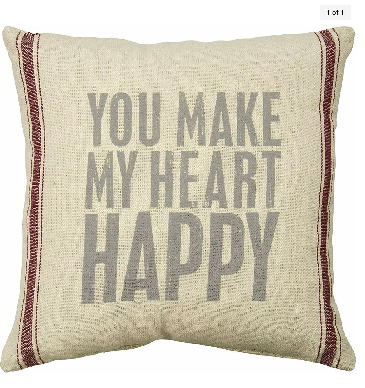 YOU MAKE MY HEART HAPPY Throw Pillow by Primitives by Kathy 15”x15”